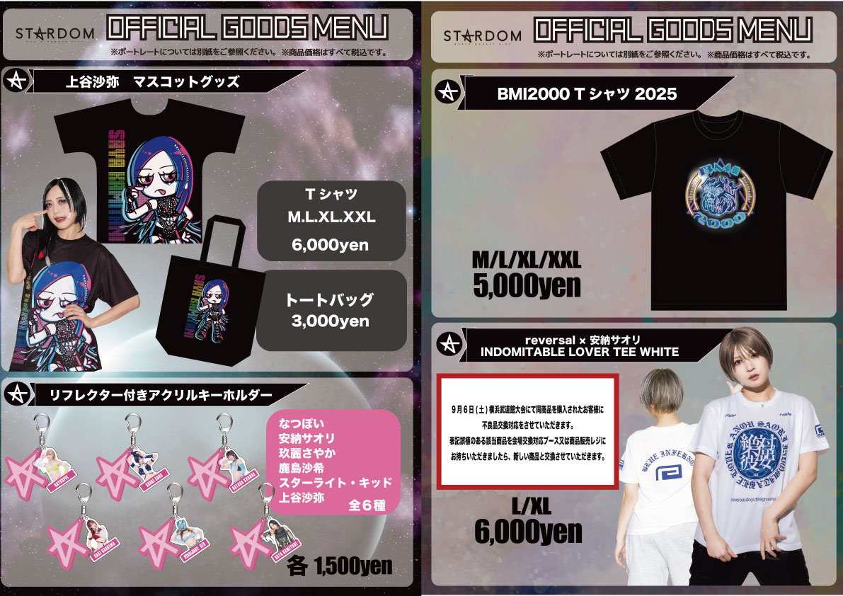 ※安納サオリ選手Tシャツにつきまして、会場物販エリアでの不良品交換対応を行なっております。