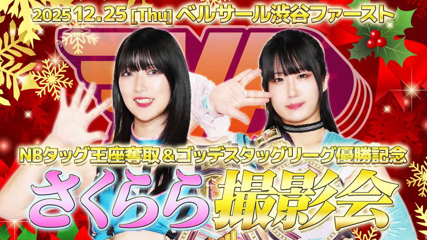 【12.25NB渋谷】NEWBLOODタッグ王者&ゴッデスタッグリーグ2025優勝チーム【さくらら】とのプレミアム3ショット撮影会開催決定!