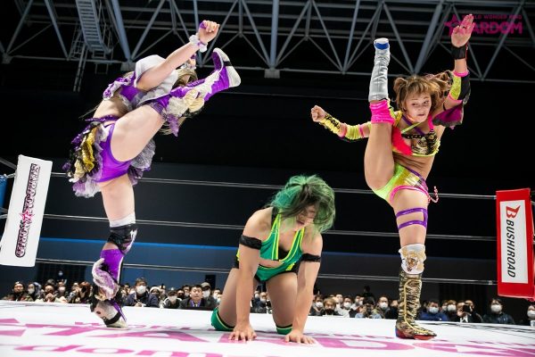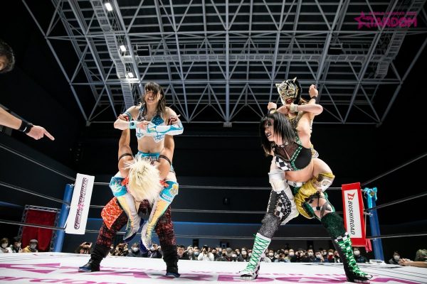 Les deux catcheuses se sont serré la main poliment, puis Iida et Unagi ont commencé le match. Elles se sont accrochées, Unagi prenant l'initiative. Unagi a relâché la prise d'un air moqueur et Iida a appliqué une clé de cou. Après une lutte acharnée, Iida a repris le contrôle de son dos. Iida a appliqué une prise de tête et Unagi a tenté de la projeter dans les cordes, mais Iida n'a pas résisté. Unagi l'a projetée dans les cordes, mais Iida l'a envoyée valser d'un coup d'épaule, faisant entrer Riho en scène. Les deux catcheuses, dont Riho, ont combiné leurs efforts pour un clothesline et ont lancé une attaque coordonnée. Iida a tenté le tombé, mais Unagi s'est dégagée. Nakano a porté un stunner par-dessus le tablier. Iida a encaissé un coup de pied coordonné de Nakano et Unagi. Unagi a appliqué une clé de jambe à Iida. Nakano a frappé Iida avec un coup de pied en forme de ballon de football. Iida a rendu la pareille, mais Nakano lui a tordu la cheville et a verrouillé ses deux jambes. Il a tenté un legbreaker et le tombé, mais Iida a riposté. Nakano enchaîna avec un body slam aérien, puis laissa la victoire à Unagi. Unagi plaqua Iida dans le coin et posa sa jambe gauche sur la troisième corde, l'étranglant. Iida esquiva les cordes et porta un double chop. Riho attira Unagi dans les cordes et enchaîna avec un 619 et une attaque plongeante au corps. Unagi contre-attaqua, et Riho tenta un brainbuster. Unagi résista et porta un body slam et une guillotine. Nakano tenta un coup de pied retourné, mais Riho le contraria avec un coup de pied. Iida porta un dropkick à Nakano, suivi de plusieurs chops inversés. Nakano esquiva, mais Iida contre-attaqua avec un chop inversé. Nakano contre-attaqua, et Iida se prépara pour un body slam. Nakano résista et esquiva un lariat, puis appliqua une prise de soumission. Lorsqu'elle fut contrée, Iida porta un coup de pied sauté. Nakano se réfugia dans le coin, mais Iida la rattrapa et lui asséna plusieurs coups de coude. Nakano la laisse tomber, mais Riho la couvre d'un coup de bras. Iida enchaîne avec un coup de pied missile et un Northern Lights sur Nakano, mais Unagi parvient à l'interrompre. Iida porte un Brainbuster à Nakano. Nakano contre avec une prise de soumission. Nakano et Unagi combinent leurs forces et portent un Face Crusher à Iida, mais Riho intervient à temps. Unagi se dégage avec un Spinebuster sur Riho. Nakano prend le dos d'Iida, mais ce dernier esquive et porte un Iidabashi, mais Unagi intervient à temps. Nakano porte un Violet Shooting, Nakano et Unagi exécutent un Heel Drop combiné, et Nakano porte un Tiger Suplex. Iida est incapable de contrer et Nakano remporte le match par tombé