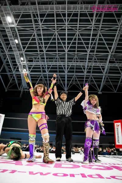 Julia rejoint DDM en tant que deuxième. Natsupoi tente un dropkick, mais Kashima l'esquive et lui applique une prise de tête. Natsupoi contre-attaque et étrangle Kashima, mais celle-ci se dégage. Natsupoi se rue dans les cordes, où Kashima la projette au sol avec un face crusher et un dropkick. Kashima la pousse contre les cordes et lui piétine le visage. Elle la projette ensuite avec un coup de pied en forme de ballon de football, puis effectue une torsion en cobra au sol. Kashima lui tire les cheveux, mais Natsupoi proteste. Kashima se libère, se place au-dessus d'elle et l'étrangle. Natsupoi charge, mais Kashima lui assène un coup de pied puissant. Natsupoi contre-attaque avec un pont. Kashima attache les cheveux de Natsupoi et la projette dans le coin, lui piétinant la gorge. Natsupoi enchaîne avec un neckbreaker et une série de dropkicks. Natsupoi tente une attaque plongeante au corps, mais Kashima contre-attaque avec une clé de genou. Lorsque Natsupoi s'échappe, Kashima prend appui sur les cordes avec son genou droit et la projette en l'air d'un coup de pied. Elle enchaîne avec un coup de pied sauté sur le genou droit de Natsupoi. Cette dernière charge, mais Kashima riposte d'un coup de pied. Kashima encaisse les coups de coude répétés de Natsupoi et contre-attaque avec un double coup de pied. Natsupoi revient à la charge, et Kashima se prépare à une double prise de bras. Natsupoi contre avec un coup de pied direct. Kashima l'enroule et elles échangent des roulades. Natsupoi parvient à contrer, mais Kashima lui assène un coup de pied au visage. Natsupoi enchaîne avec un coup de pied direct suivi d'un suplex allemand. Kashima est incapable de riposter et le compte de trois est lancé