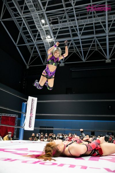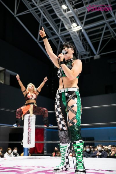 Akari et Himeka de DDM accueillent Maika. Ruaka lui tend la main, mais Maika la repousse. Ruaka tente de lui saisir le bras, mais Maika le dégage. Ruaka la prend en prise de tête, mais Maika la projette dans les cordes et lui assène un coup d'épaule suivi d'une série de projections. Après une série de coups de pied, Maika piétine le dos de Ruaka. Elle tente le tombé, mais Ruaka se dégage. Maika la soulève et encaisse une série de coups de coude de Ruaka, puis se relève. Maika la projette dans les cordes, et Ruaka lance une attaque au corps. Maika enchaîne avec une série de projections de judo et tente le tombé, mais Ruaka relève l'épaule. Maika la met à terre d'un coup d'épaule et d'un coup de pied puissant. Maika contre-attaque, et Ruaka applique une prise de crabe inversée. Maika s'échappe et contre-attaque avec un lariat en criant : « Ne me cherche pas ! » Après l'avoir mise à terre avec Sazana, Ruaka n'a pas pu riposter et le compte de trois a été effectué