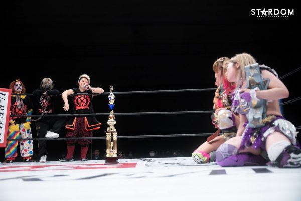 メインはアーティスト・オブ・スターダム選手権試合。中野たむ&白川未奈&ウナギ・サヤカのCOSMIC ANGELSにドンナ・デル・モンドの舞華&ひめか&なつぽい組が挑戦する。この試合でコズエンが防衛すればV5。アーティスト王座の最多防衛記録を作ることとなる。が、王座が移動すれば、ゴッデス、アーティストとチームタイトルをDDMが独占することとなる。ユニット闘争の流れを大きく左右するタイトルマッチである。