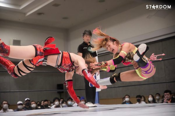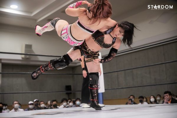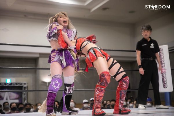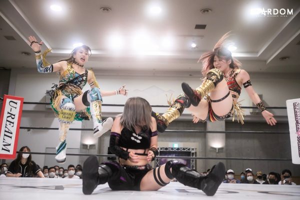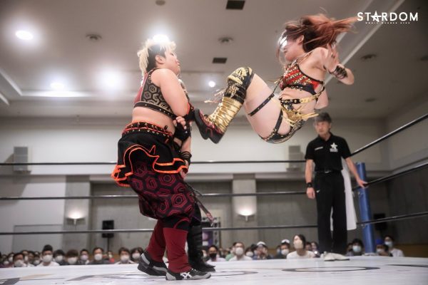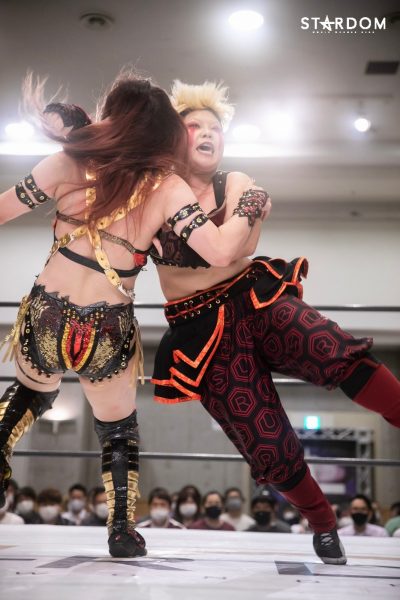 メインはCOSMIC ANGELSの中野たむ&白川未奈&ウナギ・サヤカ組とドンナ・デル・モンドの朱里&ジュリア&舞華組が6人タッグマッチで全面対決。アーティスト・オブ・スターダム王者のコズエンは2日後の6・26むつで大江戸隊、刀羅ナツコ&鹿島沙希&琉悪夏組の挑戦を受けるため、タイトルマッチを目前にして勢いをつけたい試合である。が、白川とウナギが組んだ6・20米原ではタッチワークを巡りどこかギクシャクした場面も。試合後にはセコンドの中野が不安そうな表情を浮かべていた。これは7・4横浜でおこなわれるフューチャー・オブ・スターダム王座決定トーナメント決勝戦に向けてのライバル意識と思われるが、アーティスト王座の最多防衛記録更新のためにもここはチームワークの確認をしておきたい。が、対するDDMは朱里&ジュリア&舞華のベストメンバーだけに一筋縄ではいかない。現在、ひめかとなつぽいを負傷で欠いているものの、ジュリアは体調不良から1大会のみの欠場でカムバック、なんとかベスとトリオを組むことは可能となった。タイトルマッチになってもおかしくない闘いだが、王者コズエンの方にプレッシャーのかかるカードか? 試合後に待っている風景とは?