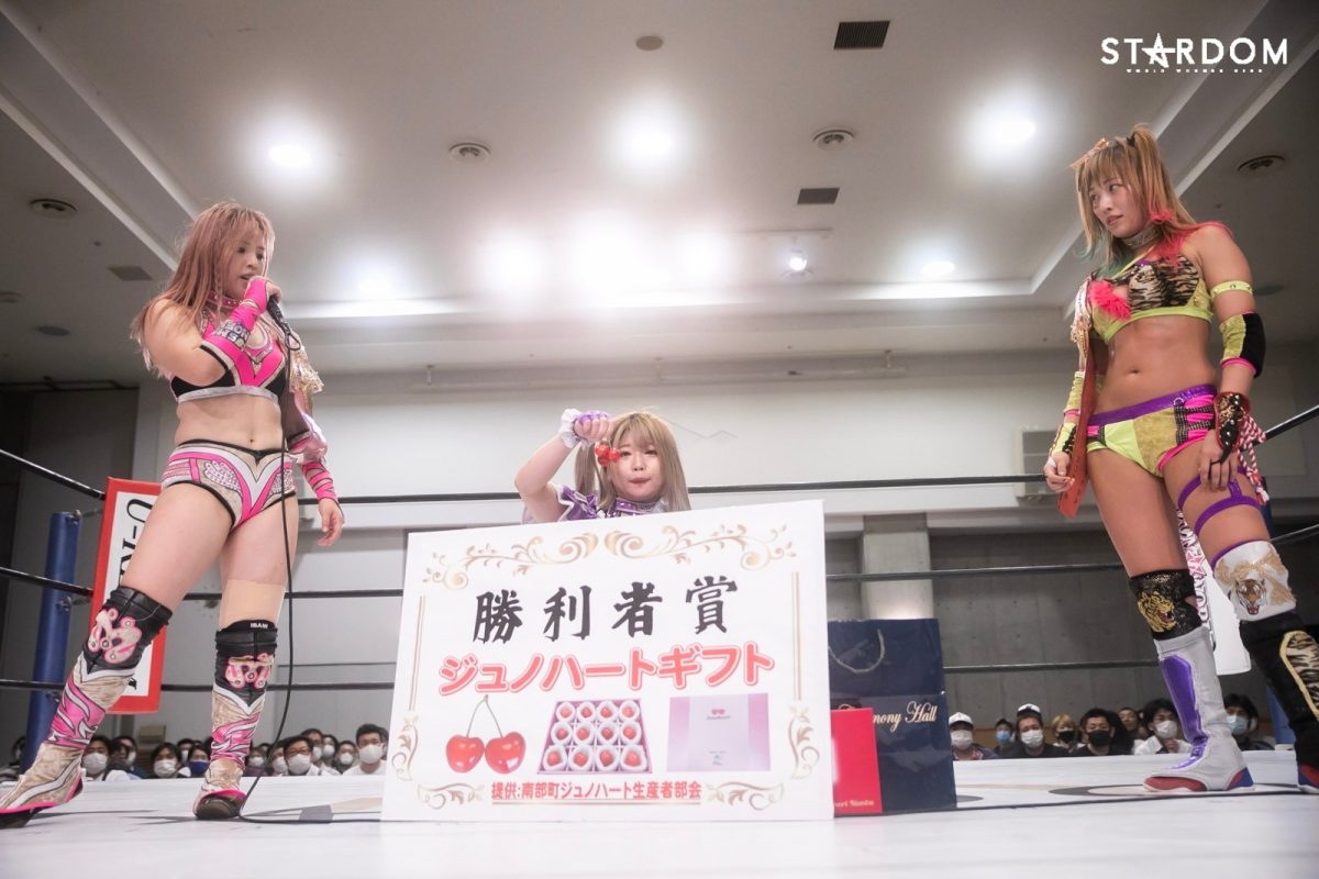 中野「宇宙のみなさん、八戸のみなさんこんばんは。私たちは2日後、むつ市でアーティスト・オブ・スターダム、6度目の防衛戦があります。最多防衛記録をどんどん更新できるように頑張りますので、むつ市まで応援に来てください!」