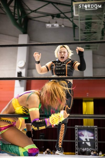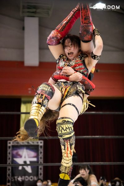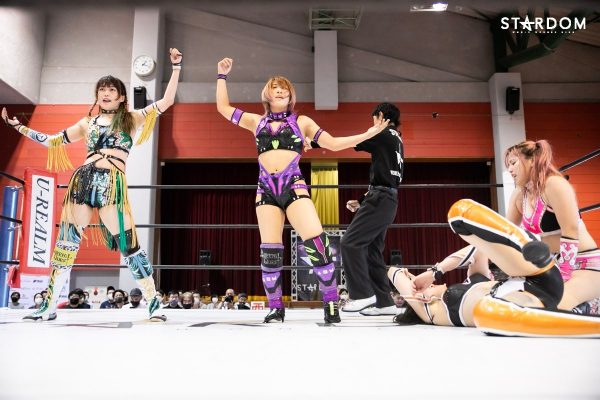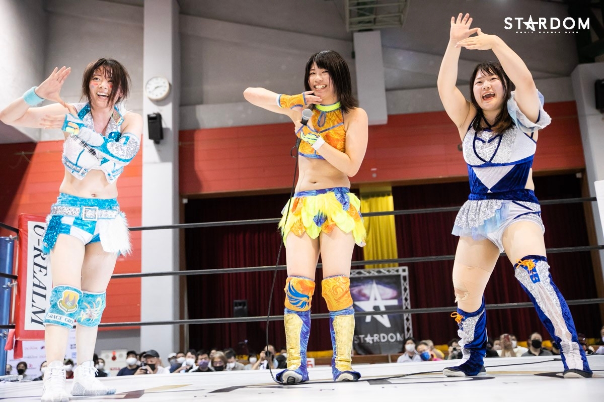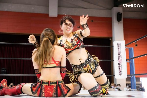 COSMIC ANGELSの中野たむ&ウナギ・サヤカ組と大江戸隊の鹿島沙希&琉悪夏組が対戦。前日の高田馬場ではウナギが同門の白川未奈を破り悲願のフューチャー・オブ・スターダム王者となった。ウナギは2冠王となり、ともにアーティスト・オブ・スターダム王者でもある中野とのタッグになる。対する大江戸隊は前日のスターライト・キッド奪還マッチで岩谷麻優に敗れたものの、最後は確信犯的反則負けで、しかもキッドは大江戸隊に残留した。その翌日の大会で鹿島と琉悪夏がタッグを結成。琉悪夏は前日のメインで最後の登場、通常のカードでもメインに出ることが多くなっているだけに、ヒールながらも今後の成長が期待される。