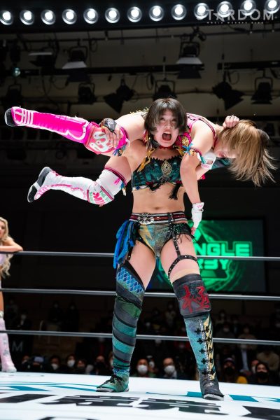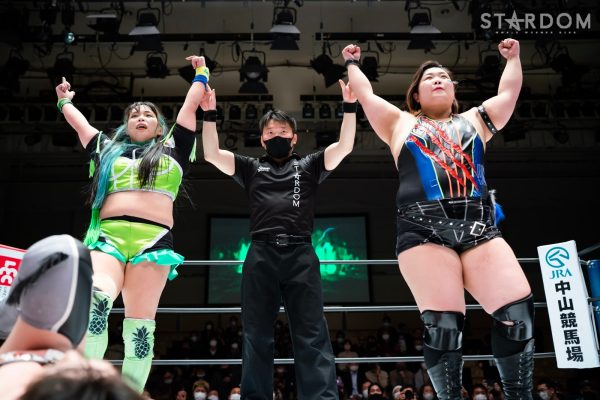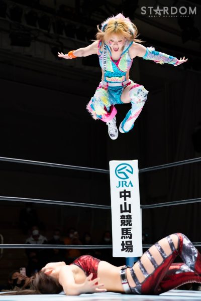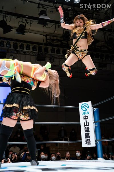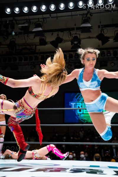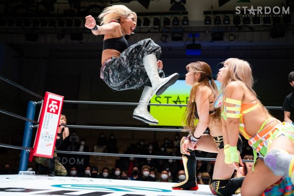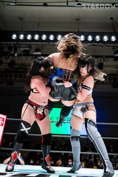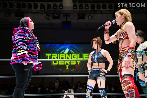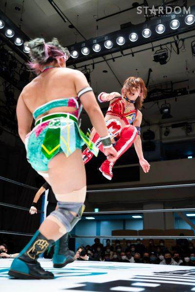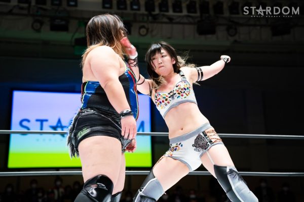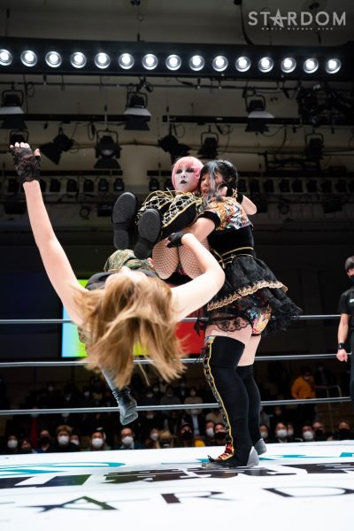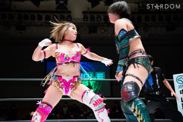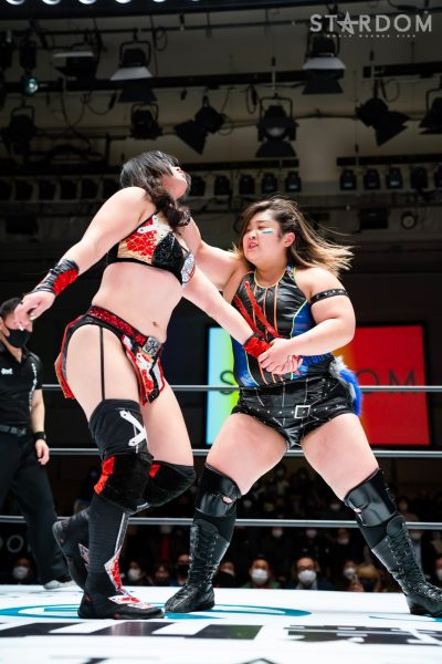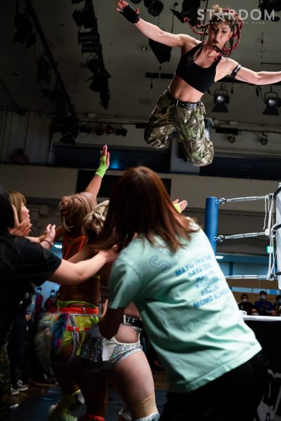 STARSが6人タッグリーグ戦で同門対決。岩谷麻優&羽南&向後桃組vs葉月&コグマ&飯田沙耶組は、12・29両国での「プレ・トライアングルダービー」の再戦でもある。両国では岩谷がドラゴンスープレックスから飯田をフォールしたが、今回は優勝争いの中の一戦で、開幕戦ではどちらも黒星発進を強いられただけに、どちらも白星がほしいところだ。