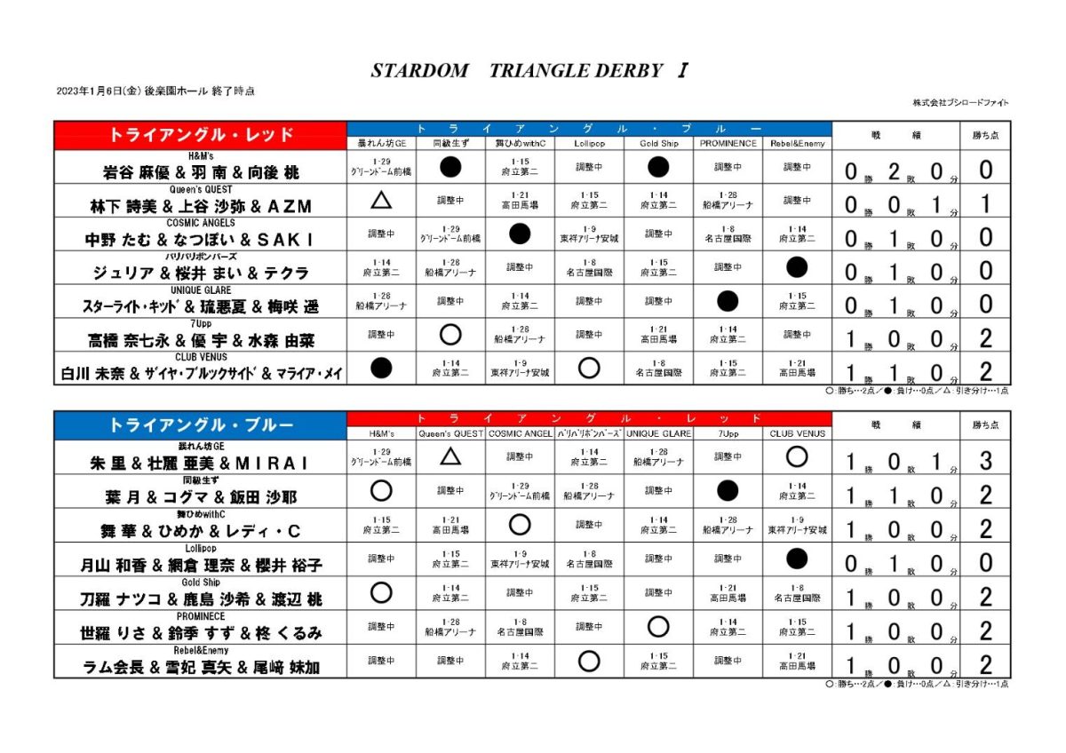 | ◆TRIANGLE DERBYⅠ公式リーグ戦 15分1本勝負 | ||