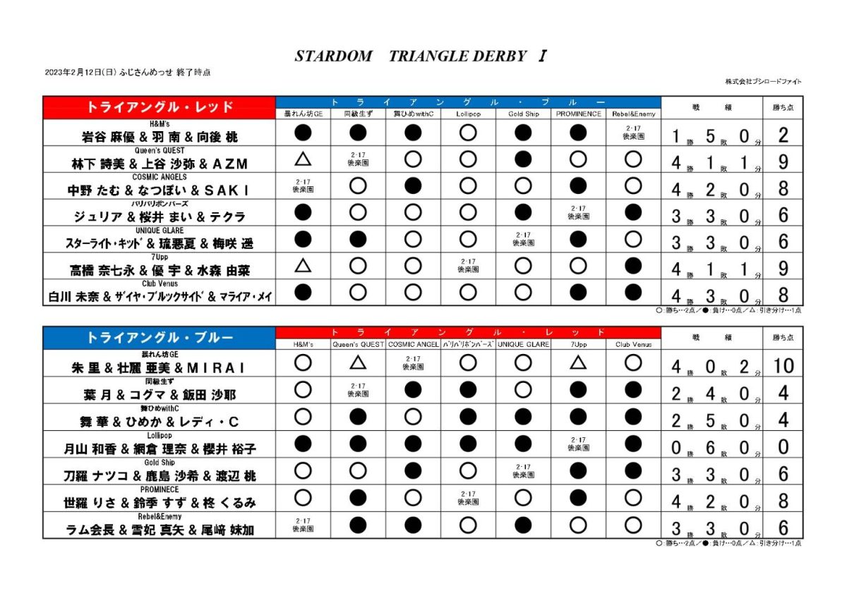 | ◆TRIANGLE DERBYⅠ公式リーグ戦 15分1本勝負 | ||