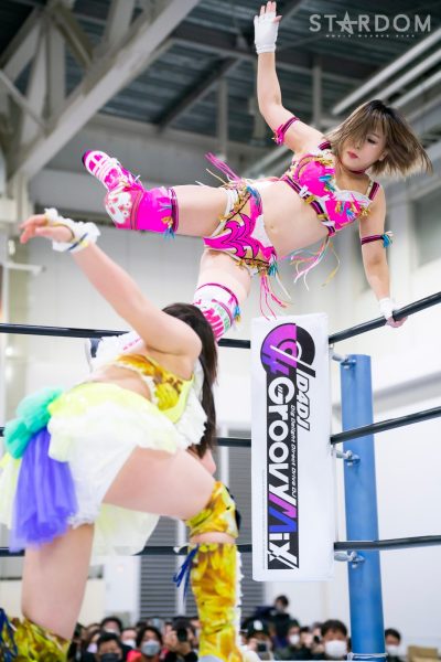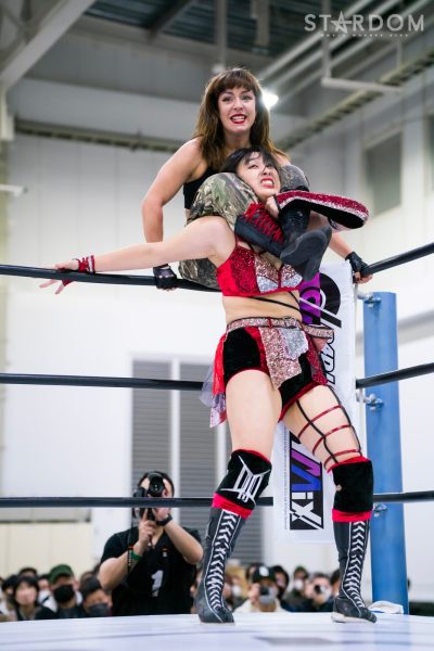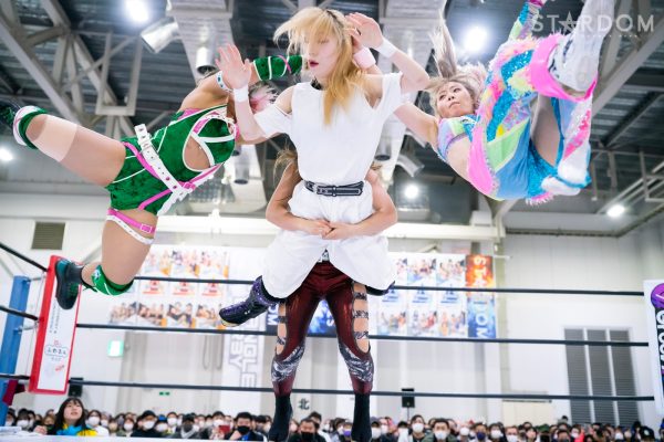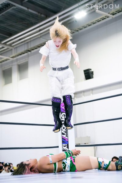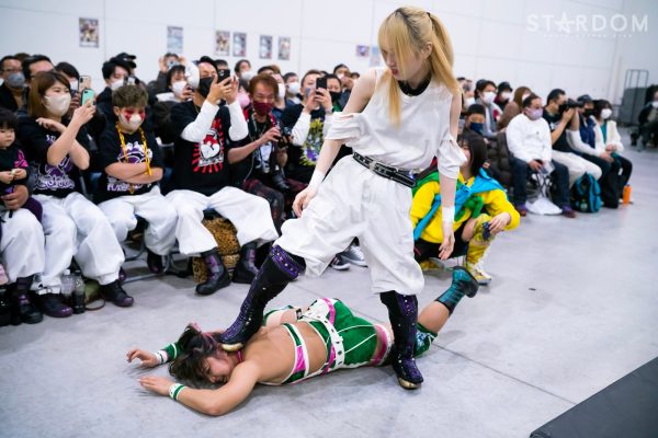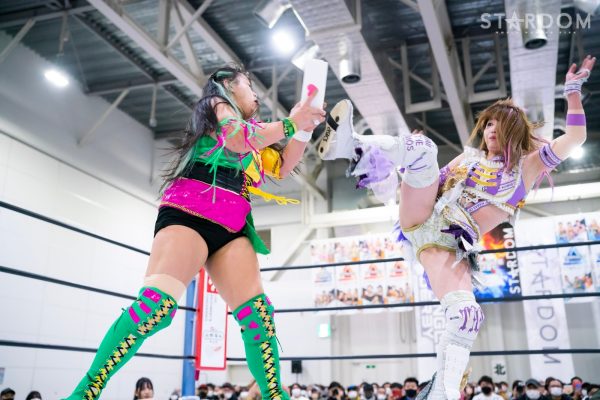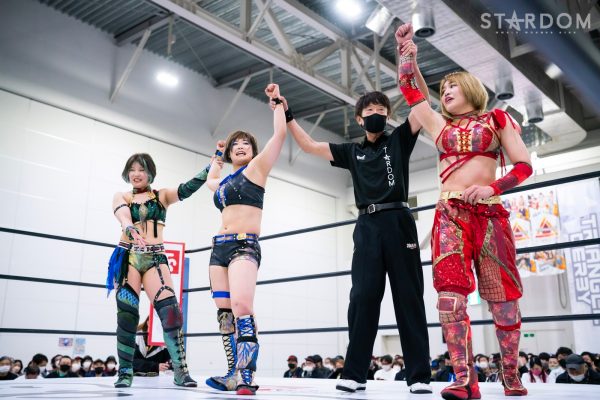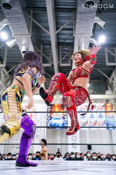 STARSの岩谷麻優&葉月&飯田沙耶組と刀羅ナツコ&鹿島沙希&渡辺桃の大江戸隊が6人タッグマッチで激突。大江戸隊のナツコ組はトライアングルダービーで3勝3敗で、公式戦は残り1試合。スターライト・キッド&琉悪夏&梅咲遥組との同門対決を含む最終公式戦を前に弾みをつけておきたいところだが…。