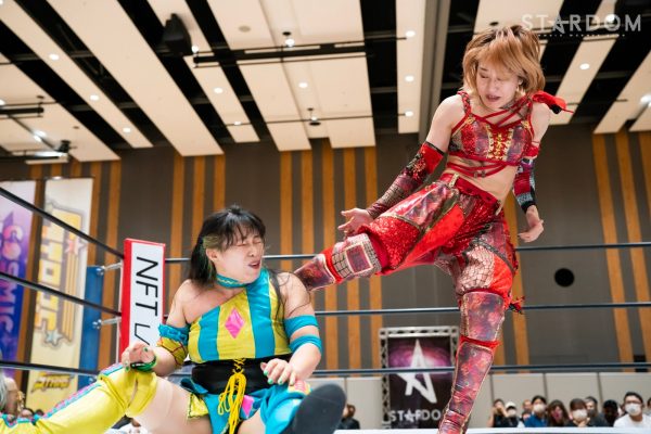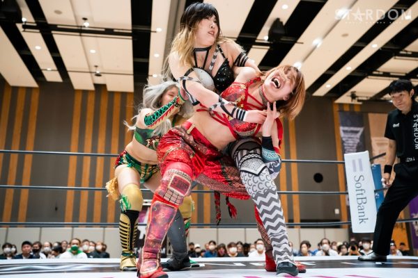 Mizumori a crié à Sorei : « Viens, Midori ! » Après une prise et une épreuve de force, Sorei l'a poussé dans les cordes et lui a asséné un double coup de hache. Après une lutte pour le dos, Mizumori a saisi les bras de Sorei et l'a forcé à prendre une pose de Yahoo ! tropicale. Mizumori a croisé les bras de Sorei, et Lady et Hanako se sont jointes à lui. Mizumori a tenté de s'enfuir, mais God's Eye est intervenu. MIRAI et Sorei ont enchaîné les coups de hache inversés sur Mizumori. Sorei a projeté Mizumori au sol. MIRAI a suivi avec un dropkick par derrière. Lorsque Mizumori a riposté, MIRAI a croisé les bras et l'a traînée dans son coin. Akari a asséné une série de coups de pied comme dans un ballon de football à Mizumori. Mizumori a riposté avec une série de coups de coude. Akari a riposté avec une série de coups de pied. Mizumori a stoppé la charge d'Akari et a enchaîné avec une projection d'épaule et une attaque au corps. Lady a frappé Akari avec un coup de pied puissant et une torsion du cobra. Sorei interrompt son attaque et fait équipe avec Akari, mais Lady la percute et lui porte un Kawazu Otoshi. Akari riposte et stoppe la charge de Lady en la projetant au sol. Akari enchaîne avec un coup de pied sauté, mais Lady le dégage. Mirai esquive Lady et lui porte un coup d'épaule. Mirai contre la tentative de chokeslam de Lady, mais reçoit un neckbreaker. Hanako enchaîne quatre coups d'épaule consécutifs sur Mirai, suivis d'un Argentina, la projette dans le coin et lui porte un lariat sauté. Mirai revient à la charge et Hanako se prépare pour un brainbuster. Mirai résiste et porte un face crusher. Elle enchaîne avec une série de coups de coude sautés, suivis d'un lariat sauté. Alors qu'elle se dirige vers le coin, Mizumori intervient, ce qui permet à Lady et Hanako de l'encercler et de lui porter un big boot. Hanako porte un Argentina sur Mirai, mais God's Eye intervient pour la contrer. Lady appelle Hanako à la rescousse et tente un brainbuster sur Mirai. Mirai résiste, mais place un double big boot et Hanako enchaîne avec un coup de genou. Au retour de Mirai, Ayuri intercepte Hanako, Souri exécute un kamikaze et Mirai porte un coup de coude. Hanako revient sur le ring et Mirai la force à une projection arrière. Mirai tente un lariat, mais Hanako l'esquive et place un big boot et un brainbuster. Cependant, Mirai se relève. Hanako déclare être prête pour le finish, mais Mirai la contre avec un lariat. Mirai applique une prise de crabe inversée sur Hanako. Dans le public, Ayuri applique une clé de bras à Lady pour l'empêcher d'intervenir. Hanako abandonne et Mirai est déclarée vainqueure