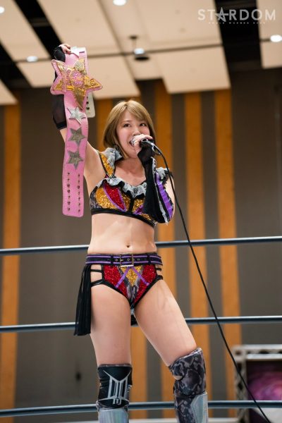 Hanan : « Oui, j'ai gagné le tournoi de retour de Tochigi ! C'était super de retrouver les trois sœurs et tout le monde pour notre deuxième tournoi ici au Light Cube. Merci ! On fera de notre mieux pour revenir. Il y a aussi le 5★STAR GP Rumble (où les participants sont sélectionnés). J'espère y retourner et gagner le droit de concourir en 5★STAR, alors soutenez-moi ! Vous avez passé une bonne journée ? Y a-t-il des habitants de Tochigi parmi nous ? Le nombre de participants a explosé ! Merci. Bon, je vais continuer sur cette lancée et conclure le spectacle. Vous reviendrez ? Croyez en aujourd'hui et brillez demain. Nous sommes Stardom ! »