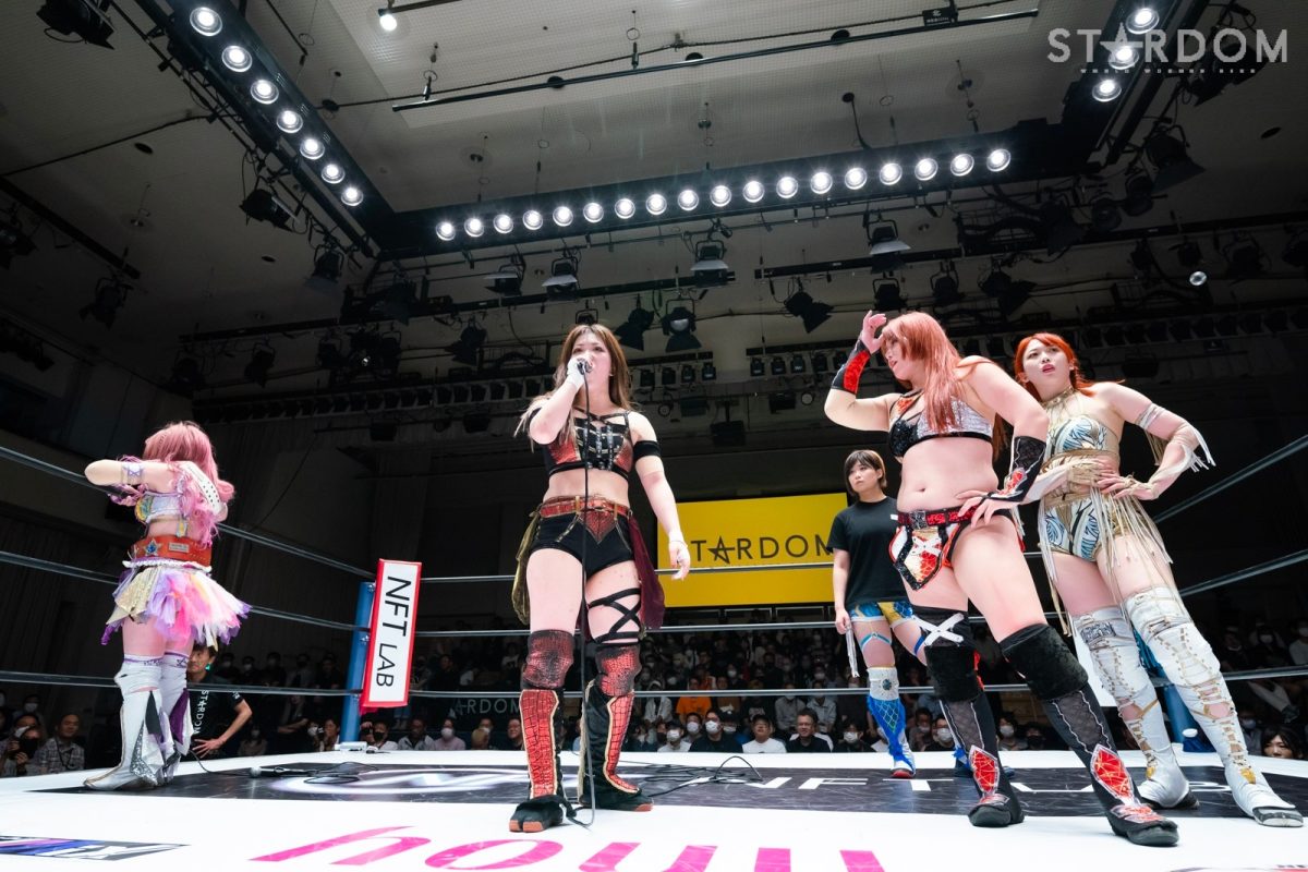 岩谷「この2人はね、試合中にお互い殴り合ってましたけど、こんなにチャンピオンが揃ってる中でこの試合を決めれなかったっていうところが、ちょっとまだまだ、世代上と言っても、決めきれなかった事実はここにあるので、次を提案してくれたことが逆にありがたいです。次こそ必ずこのスターダム四天王って言われるのかな? ちょっとわからないですけども、このスターダム四天王がちゃんと壁になってそこにね、誰かが脱落して違う四天王のメンバーが来るかもしれないから、自分たちも気を抜かずにちゃんとスターダムのトップ張っていけるように頑張っていきたいと思います。あくまでもこの四天王の中でスターダムのアイコンは岩谷麻優なんで、よろしくお願いします」