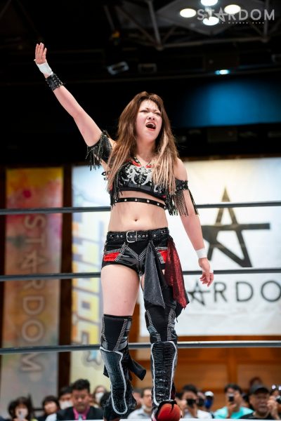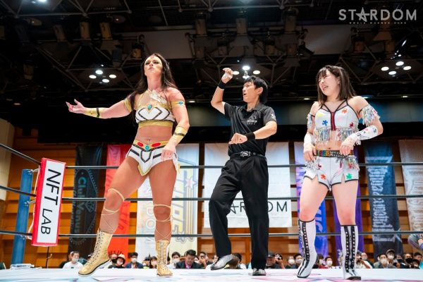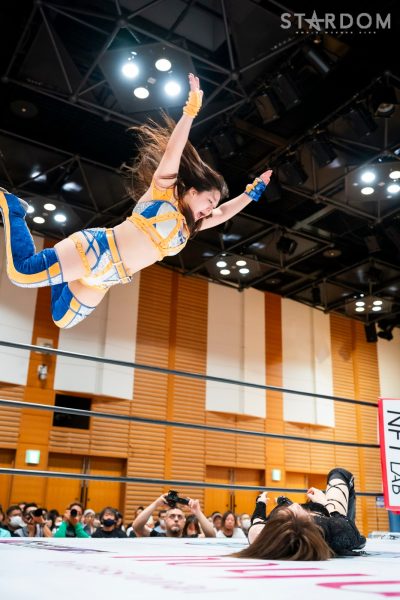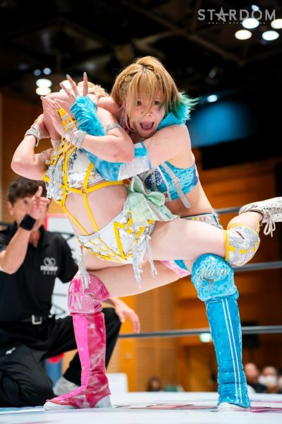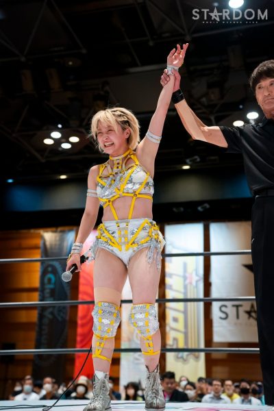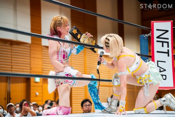Natsupoi : « Mayu-san, je vous ai pris trois points. Je vous ai pris trois points, à vous, la championne IWGP (féminine) ! »