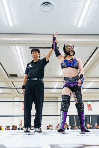 Maika attaque et projette Suzuki dans le public. Suzuki riposte et une bagarre éclate à l'extérieur du ring. Suzuki assène un coup de coude et quitte les lieux, mais Maika la poursuit. Julia et Sakurai, restées sur place, entrent sur le ring