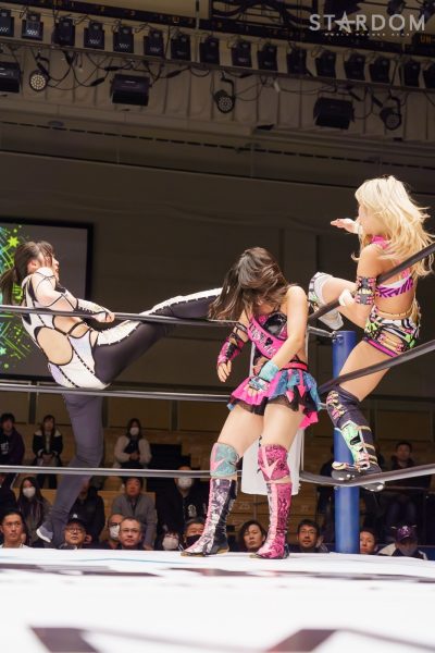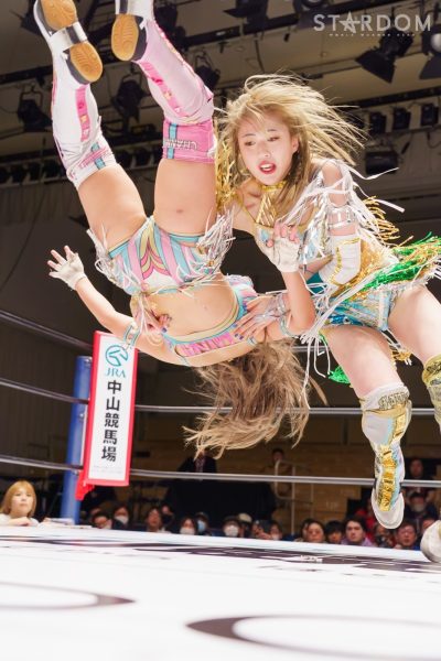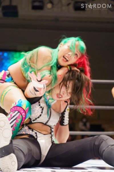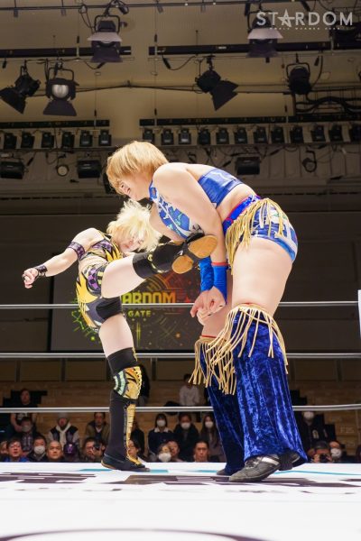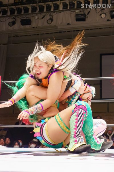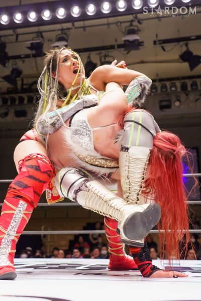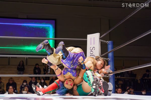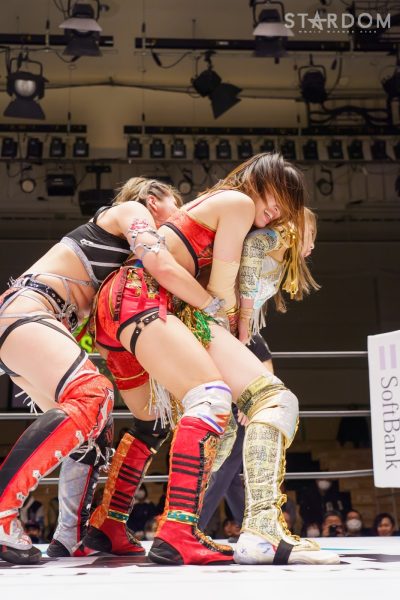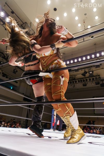 岩谷麻優&ジュリア組と舞華&安納サオリ組によるタッグマッチ。ユニットの枠を越えたこのタッグマッチは、全員がシングルのタイトルホルダー。舞華がワールド・オブ・スターダム王者、安納がワンダー・オブ・スターダム王者、岩谷がIWGP女子王者、そしてジュリアがSTRONG女子王者である。舞華&安納組はどちらも12・29両国で初奪取を果たした新王者コンビ。この日おこなわれるランブル戦で初防衛戦の相手が決まるが、まずはこの試合で新王者の強さをアピールしたいところだろう。対する岩谷&ジュリア組は新日本プロレス発のタイトルで、海外も意識したベルト保持者ということになる。2日前のTDCホール大会で岩谷が朱里を破りIWGP女子王座を防衛すれば、同大会でジュリアはドンナ・デル・モンドを解散、この試合が新たなるスタートということにもなる。
