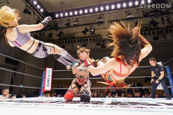 弓月とHANAKOが先発しロックアップ。HANAKOが押し込みブレイクすると、弓月がエルボー連打で向かっていく。HANAKOがやり返すと、弓月がさらに連打する。弓月がロープに振ろうとするが、HANAKOがヘッドロックを離さず。弓月が切り返しヘッドロックからグラウンドにもっていく。弓月のドロップキックをかわしHANAKOがショルダータックル、串刺しボディーアタック、キャメルクラッチ。玖麗が入って弓月にドロップキックを見舞うと、HANAKOがエルボードロップ。HANAKOが「こいや!」と挑発し、弓月のエルボー連打を受けて立つ。HANAKOがエルボーを打って突進するとエプロンから八神が蹴りを入れ、弓月がドロップキック。替わった八神が串刺しでハイキック、ミドルキックの連打をHANAKOに浴びせる。HANAKOが八神をボディースラム、アルゼンチンバックブリーカー。コーナーに追い込むと串刺しボディーアタック、ニードロップ。玖麗が入り八神にスワンダイブでアームホイップ、ドロップキック。八神が返すと、玖麗はスリーパーで捕獲。八神が切り返し腕を取るが、玖麗が体重をかけてカバー。八神が返して飛びつくと腕十字へ。八神がミドルキックも玖麗が返す。弓月が玖麗へドロップキック連打からボディースラム。返した玖麗がエルボー。弓月もやり返しエルボーの打ち合い。HANAKOが割って入り玖麗を持ち上げて弓月にぶつける。玖麗がカバーするが弓月が返す。玖麗がボディースラムで弓月を叩きつけるも2カウント。玖麗が弓月にスリーパー、ドロップキック。弓月が玖麗をかいくぐりドロップキック。ボディースラムを仕掛け合うと八神のアシストを得て弓月がコルバタ。玖麗が丸め込みの連続。10分経過。丸め込みの応酬から玖麗がスピア。しかし、八神がカットする。玖麗がエルボー連打、弓月がカウンターで払い腰。玖麗が立ち上がるが弓月が丸め込むと3カウントが入った。