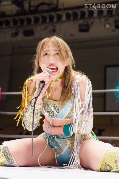 上谷「2・4エディオンアリーナ大阪で、この私が必ず赤いベルトを巻いて、みなさんに最高の姿をお見せします! 誰がなんと言おうと私がスターダムだ!」