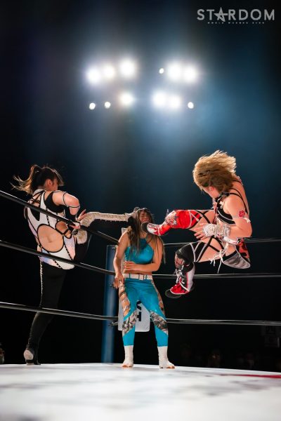 安納サオリ&水森由菜のコズミックエンジェルズとスターライト・キッド&琉悪夏の大江戸隊がタッグマッチで対戦。2・4大阪でおこなわれるワンダー・オブ・スターダム王座に向けた前哨戦で、王者・安納と挑戦者・キッドが2日連続で対戦する。前日の仙台大会では渡辺桃と組んだキッドが安納の目の前で水森にスタースープレックスでフォール勝ち。前哨戦では一歩リードの印象を残した。白いベルトを巻く安納にとってはこれ以上リードを許すわけにはいかず、水森も雪辱を期しての闘いとなる。はたして、大一番を前に当事者同士で決着がつくのか?