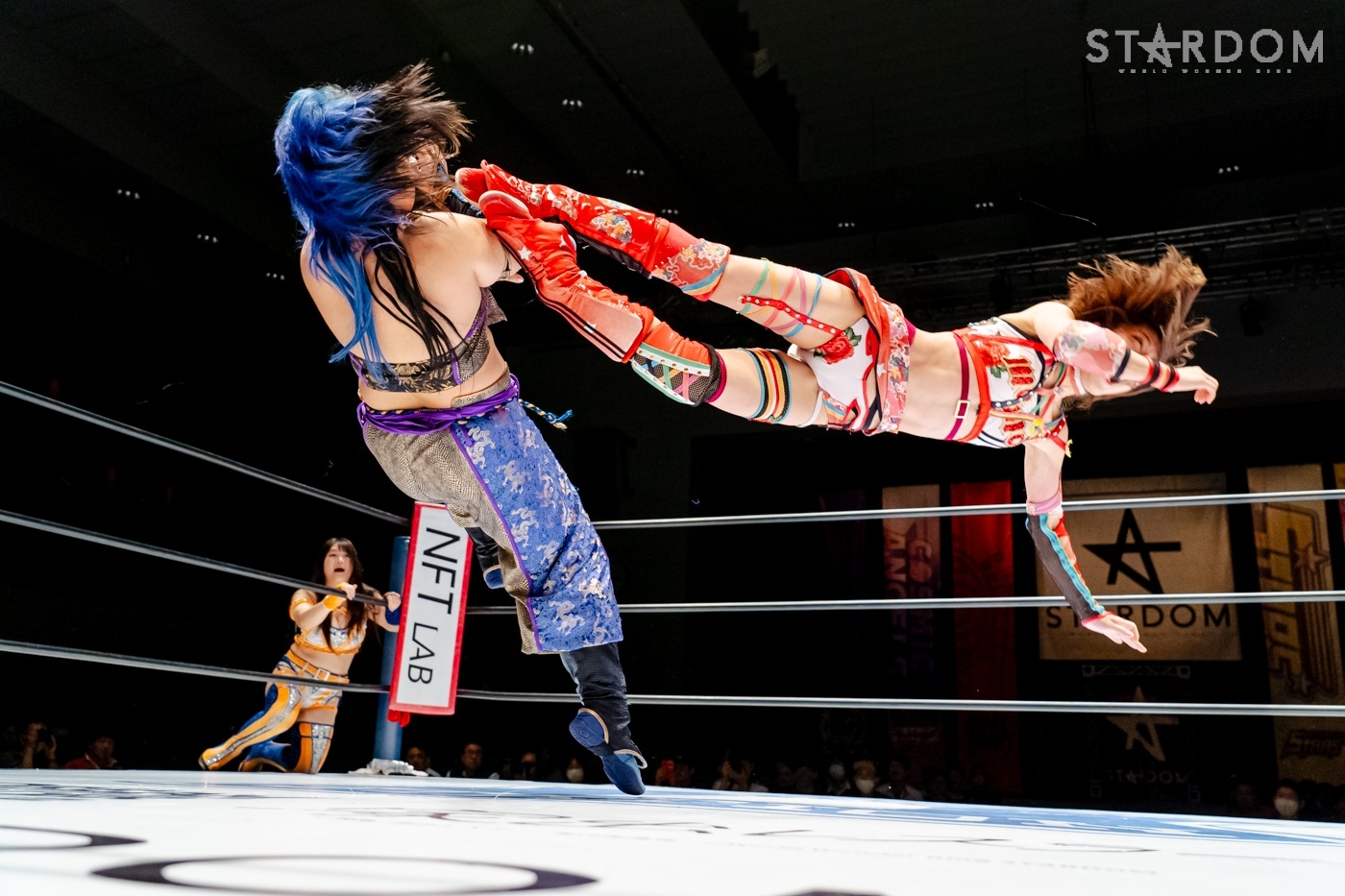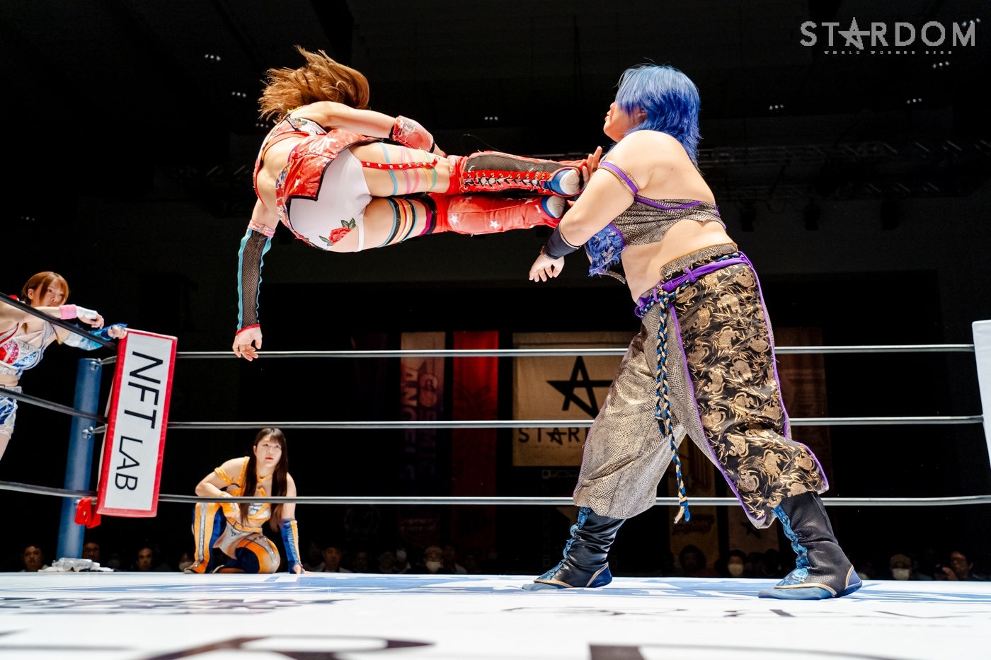 朱里&小波組のゴッズアイと羽南&飯田沙耶組のSTARSがタッグで対戦。朱里組はゴッデス・オブ・スターダム王者で、羽南組がNEW BLOODタッグ王者というタッグ王者対決でもある。NEW BLOODタッグを防衛と同時に、ゴッデスにも挑んだ羽南と飯田のwing☆gori。ゴッデス王座を葉月&コグマ組から奪った朱里&小波との対戦で、再びタッグ2冠への欲が湧き出るか。朱里組には渡辺桃&テクラ組との初防衛戦が7・23後楽園に控えており、とりこぼしは許されないが…。