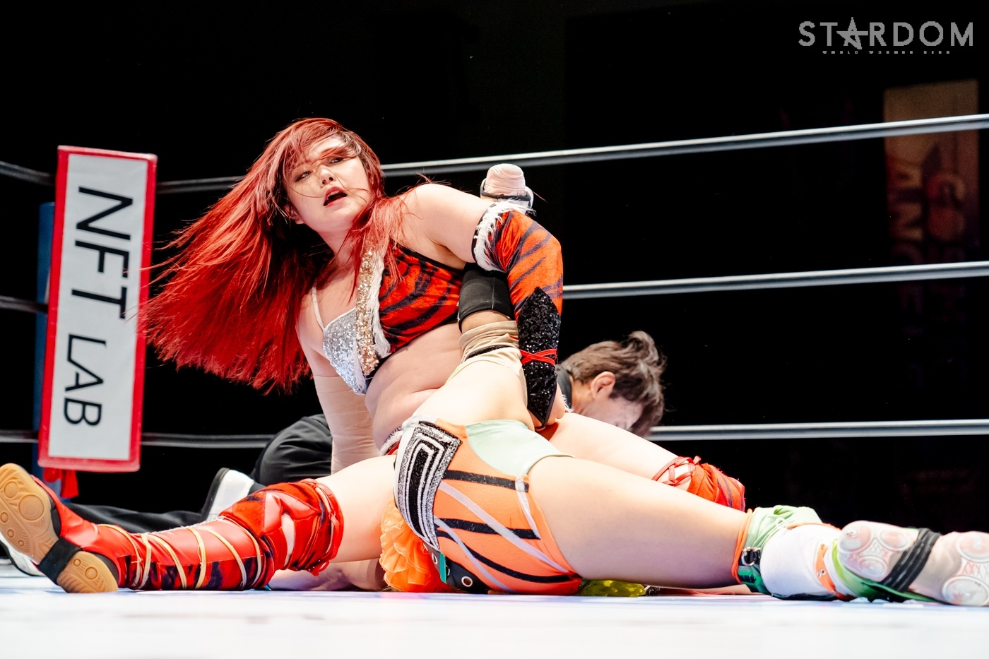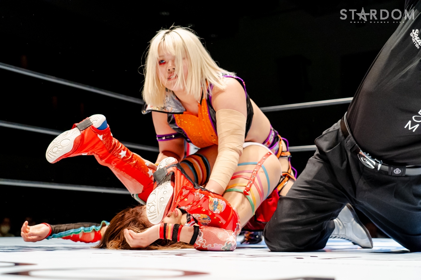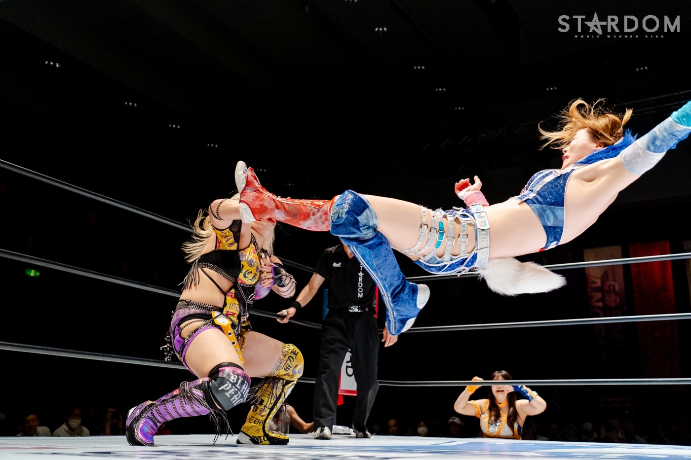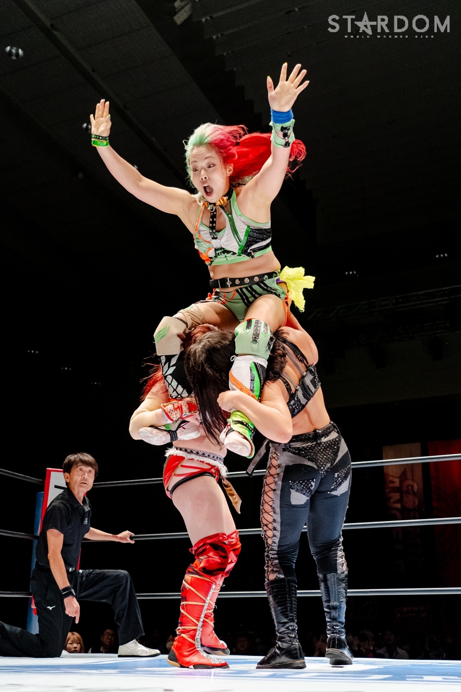 星来がジーナを呼ぶように先発に指名。ジーナがヘッドロック、ロープに振りトリッキーなムーブを見せ、星来のドロップキックをかわして睨み合う。星来が「アクシュー」と手を差し出すが、ジーナが蹴りを入れる。ロープへの振り合いでどちらも譲らないと、ジーナがエルボー、ドロップキック。月山がジーナと合体し、連係で星来に攻撃。月山はヒップバットの連打を星来に浴びせる。ジーナが星来にブレーンバスター。2発目を星来がこらえて足を踏みつけネックブリーカー。キッドがジーナにコルバタ。ダイビングボディーアタックをジーナがキャッチ。キッドがこらえてマットに叩きつける。キッドは星来とダブルのドロップキックで月山を排除、キッドがジーナにその場跳びムーンサルト。ジーナが返してトラースキック。キッドがラリアットをかわすが、ジーナがアームホイップ、トラースキック。返したキッドがジーナのチョップをかわし「ノーチョップ」を主張。チョップを打ってくるジーナにキッドが「やめろって言ってんだろ!」とチョップをやり返す。月山がキッドに串刺しヒップアタック、クロスボディー。星来が月山を捕獲し、串刺しラリアット、「痔になれ!」とヒップを蹴り上げる。しかし、ジーナのアシストを得て月山が星来にヒップアタック連打。極楽ドン狙いを星来が切り返し、ドロップキック。ジーナがカットし、星来に高速で旋回式サイドスラム、月山が極楽ドンを決める。しかし、キッドがカットする。月山は星来を起こしてムーンライトドリーム狙い。星来がこらえると、カウンターで丸め込み。キッドの619から星来が丸め込むと、月山がフォールを奪われた。