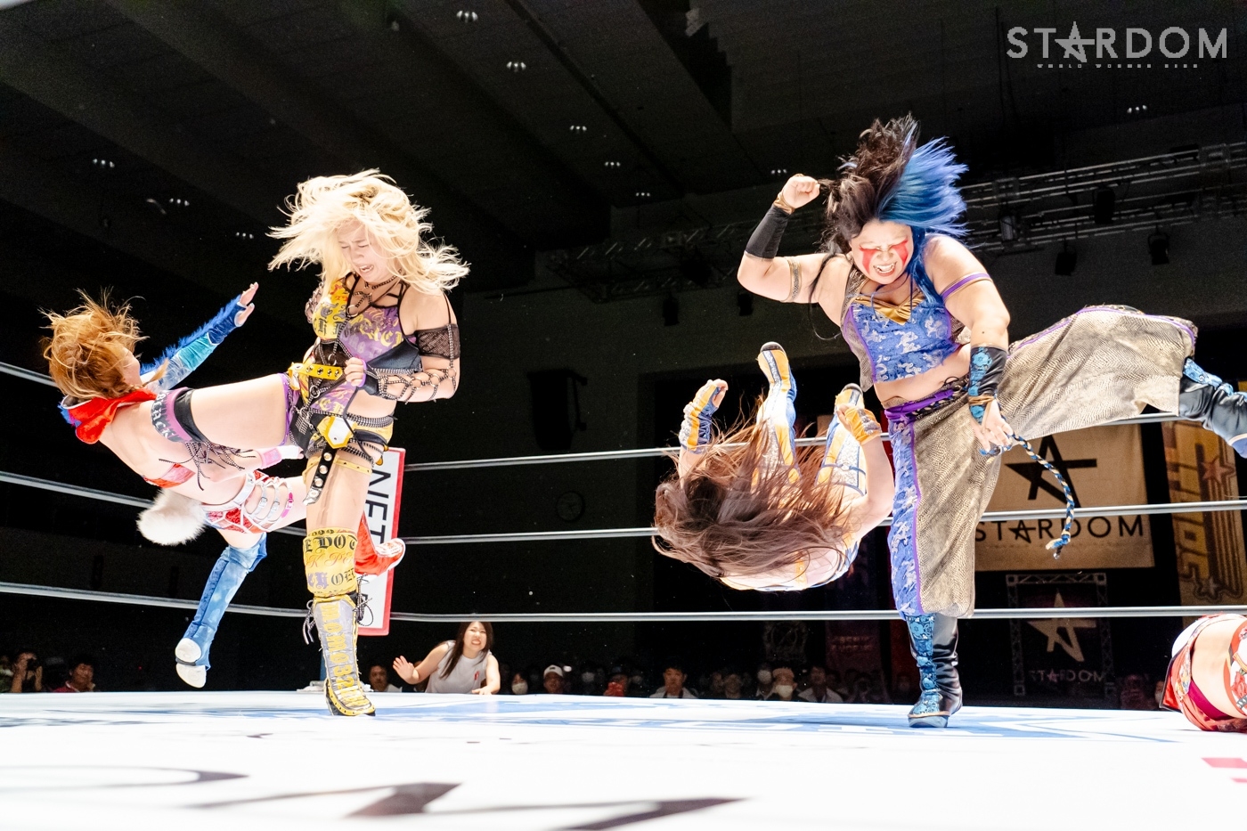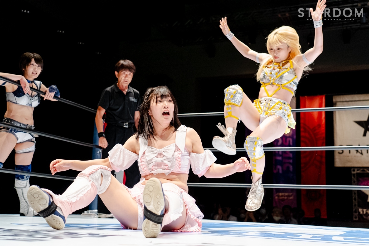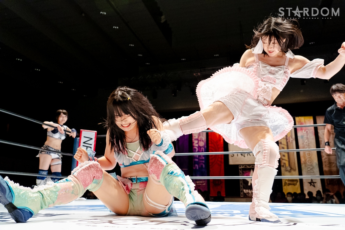 安納が先発を買って出ると、なつぽいが玖麗を制して安納と向かい合う。探り合いから離れ、中央で睨み合うと、両者ともタッチ。さくらと玖麗が入り、腕の取り合い。両者のドロップキックが交錯すると、さくらのドロップキックがヒットし、サッカーボールキック。安納が玖麗の髪を束ねてヘアーホイップ、控えのなつぽいをリング下に落とす。さらに安納がヘアーホイップで投げつけ、キャメルクラッチ。なつぽいがリング間を走ってドロップキックでカットする。安納が怒って、なつぽいをリング下に落とす。さくらが玖麗に串刺しドロップキック。玖麗がかわして、スワンダイブ式アームホイップからドロップキック。なつぽいはさくらをコーナーに叩きつけ、安納に見せつけるようにヘアーホイップ、背中にドロップキック。さくらがエルボー連打で向かっていくと、なつぽいが「もっと!」と受けて立つ。なつぽいがエルボーをやり返し、ハイキックをかわしてドロップキックの連打。安納が乱入するが、なつぽいがアームホイップ、2人にまとめてドロップキックを放つ。分断したなつぽいが、コーナーからさくらにダイビングボディーアタック。玖麗がボディースラムからスリーパー。さくらがエスケープするが、顎のあたりから流血。さくらはミドルの連打で玖麗を倒すも、カウンターでドロップキックを食らう。さくらもカウンターでトラースキック。安納が玖麗にインディアンデスロック。なつぽいが乱入するが、ブレーンバスターで排除し、玖麗を締め続ける。玖麗がエスケープすると、安納のビッグブーツをかわしてドロップキックの乱れ打ち。安納がカウンターでビッグブーツ、コーナーに上がると、なつぽいがカットしデッドリードライブ。なつぽいと玖麗が合体ネックブリーカー、玖麗がジャックナイフ。安納が返すと、さくらがトラースキックで援護し、安納がフィッシャーマン。なつぽいがカットし、安納とエルボーを打ち合う。トラースキックも打ち合うと、玖麗が安納にスピアを放つ。安納が返すと、さくらがなつぽいに回し蹴り、玖麗が安納にミサイルキック。安納が返すと、玖麗の突進に延髄斬り、ポテリング。玖麗が返せず、安納がフォール勝ちをゲットした。