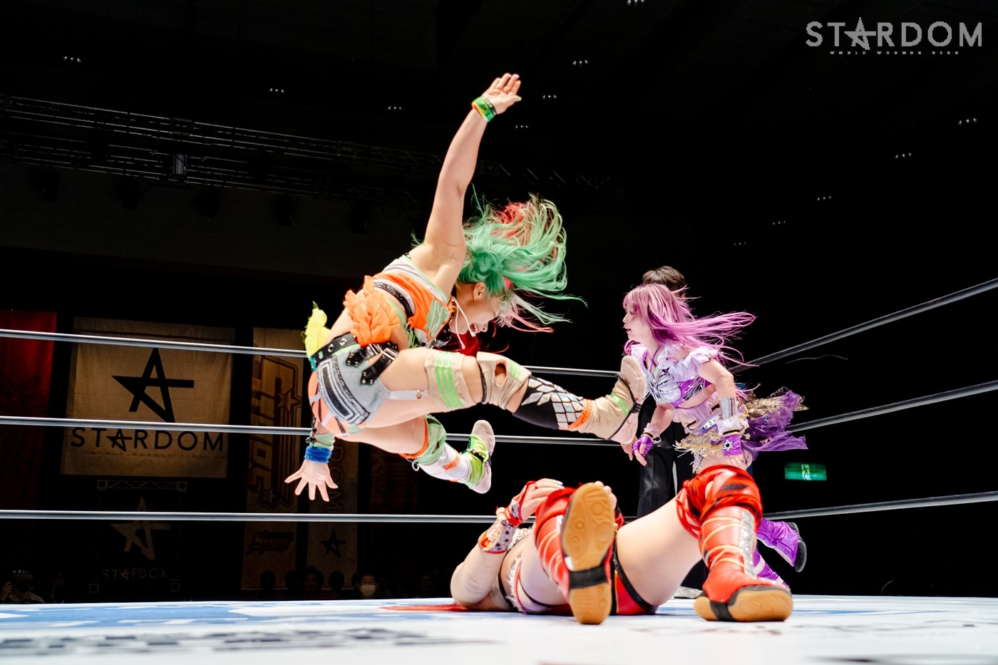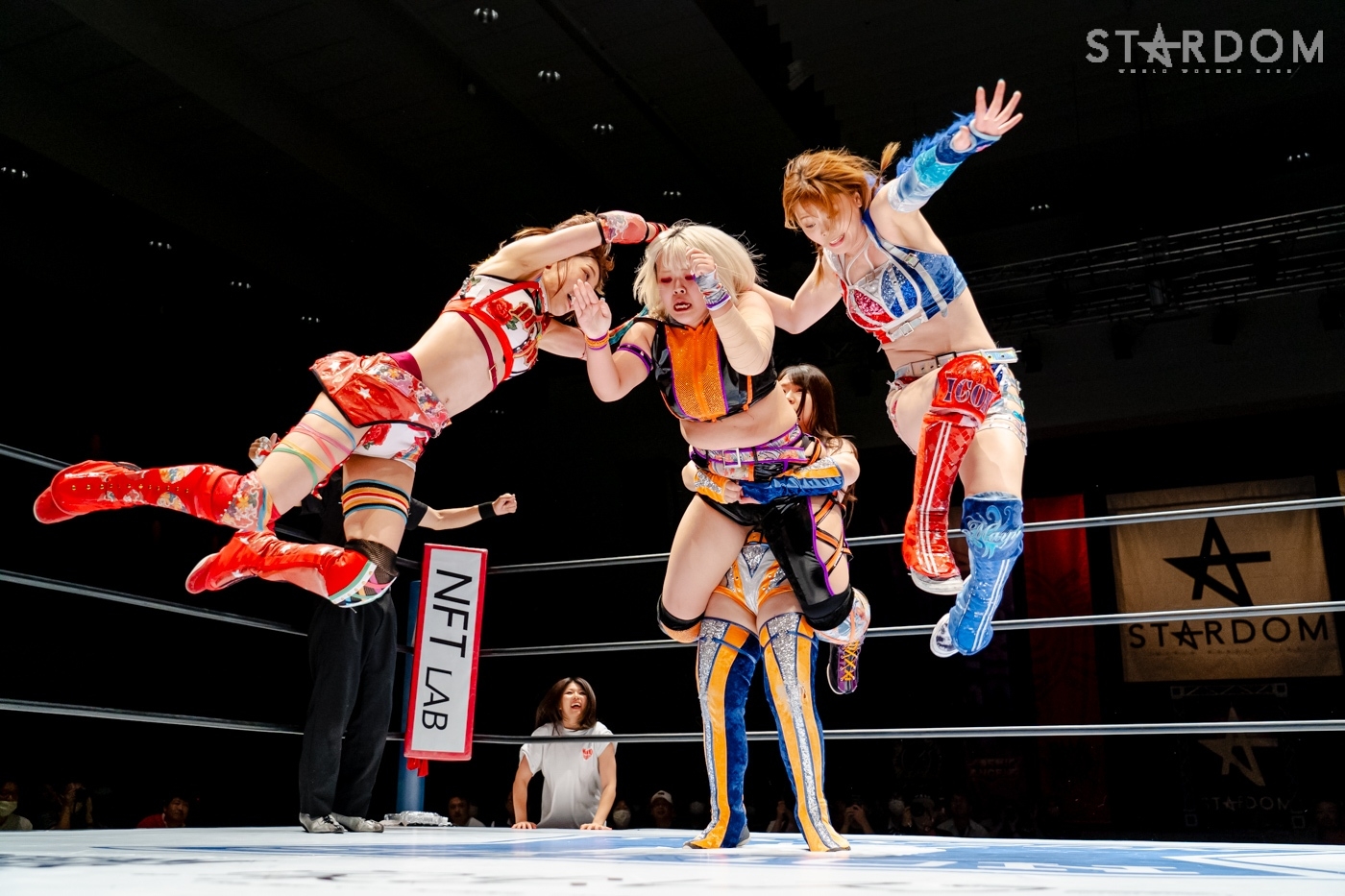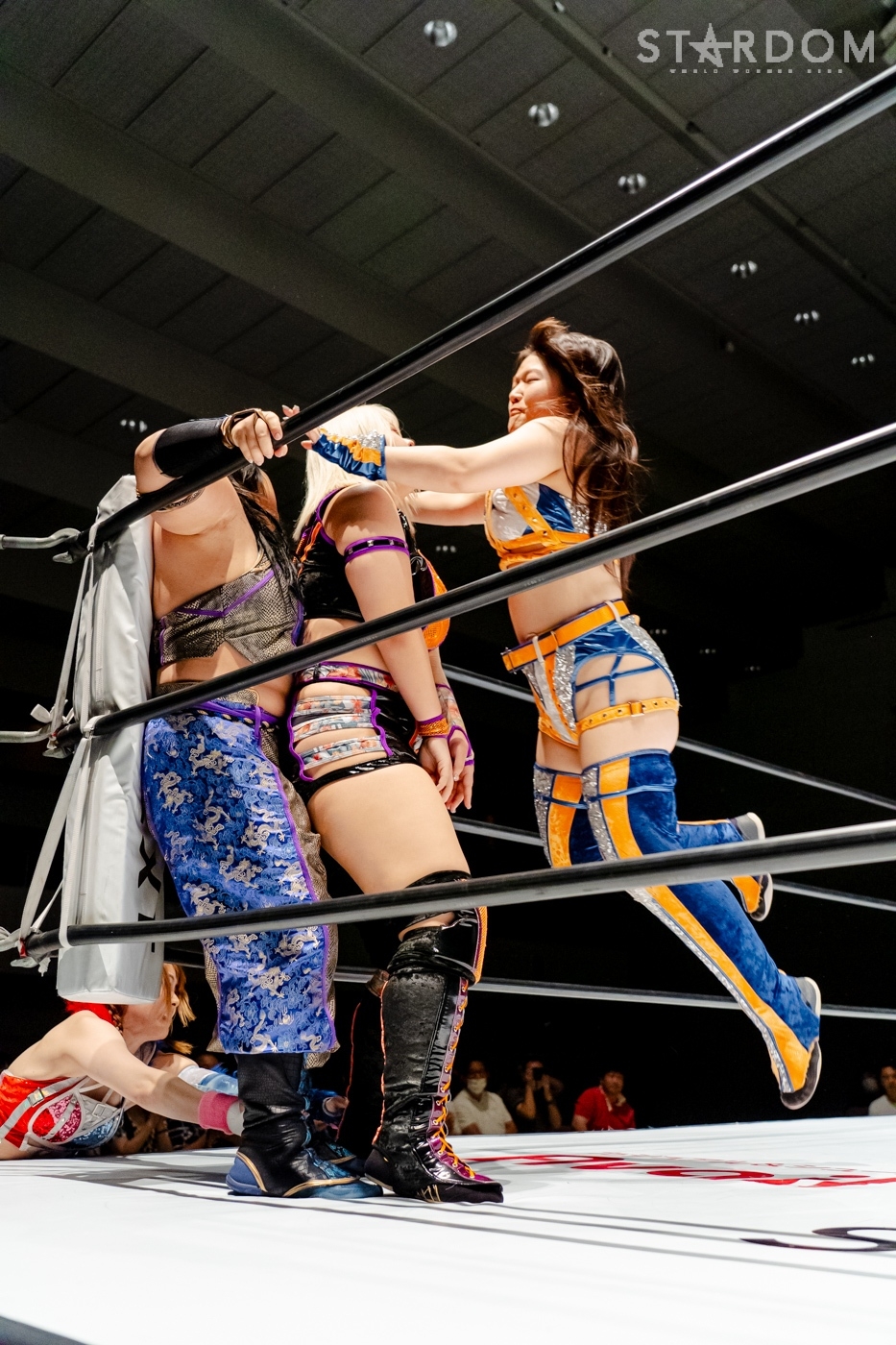 安納が先発を買って出ると、なつぽいが玖麗を制して安納と向かい合う。探り合いから離れ、中央で睨み合うと、両者ともタッチ。さくらと玖麗が入り、腕の取り合い。両者のドロップキックが交錯すると、さくらのドロップキックがヒットし、サッカーボールキック。安納が玖麗の髪を束ねてヘアーホイップ、控えのなつぽいをリング下に落とす。さらに安納がヘアーホイップで投げつけ、キャメルクラッチ。なつぽいがリング間を走ってドロップキックでカットする。安納が怒って、なつぽいをリング下に落とす。さくらが玖麗に串刺しドロップキック。玖麗がかわして、スワンダイブ式アームホイップからドロップキック。なつぽいはさくらをコーナーに叩きつけ、安納に見せつけるようにヘアーホイップ、背中にドロップキック。さくらがエルボー連打で向かっていくと、なつぽいが「もっと!」と受けて立つ。なつぽいがエルボーをやり返し、ハイキックをかわしてドロップキックの連打。安納が乱入するが、なつぽいがアームホイップ、2人にまとめてドロップキックを放つ。分断したなつぽいが、コーナーからさくらにダイビングボディーアタック。玖麗がボディースラムからスリーパー。さくらがエスケープするが、顎のあたりから流血。さくらはミドルの連打で玖麗を倒すも、カウンターでドロップキックを食らう。さくらもカウンターでトラースキック。安納が玖麗にインディアンデスロック。なつぽいが乱入するが、ブレーンバスターで排除し、玖麗を締め続ける。玖麗がエスケープすると、安納のビッグブーツをかわしてドロップキックの乱れ打ち。安納がカウンターでビッグブーツ、コーナーに上がると、なつぽいがカットしデッドリードライブ。なつぽいと玖麗が合体ネックブリーカー、玖麗がジャックナイフ。安納が返すと、さくらがトラースキックで援護し、安納がフィッシャーマン。なつぽいがカットし、安納とエルボーを打ち合う。トラースキックも打ち合うと、玖麗が安納にスピアを放つ。安納が返すと、さくらがなつぽいに回し蹴り、玖麗が安納にミサイルキック。安納が返すと、玖麗の突進に延髄斬り、ポテリング。玖麗が返せず、安納がフォール勝ちをゲットした。