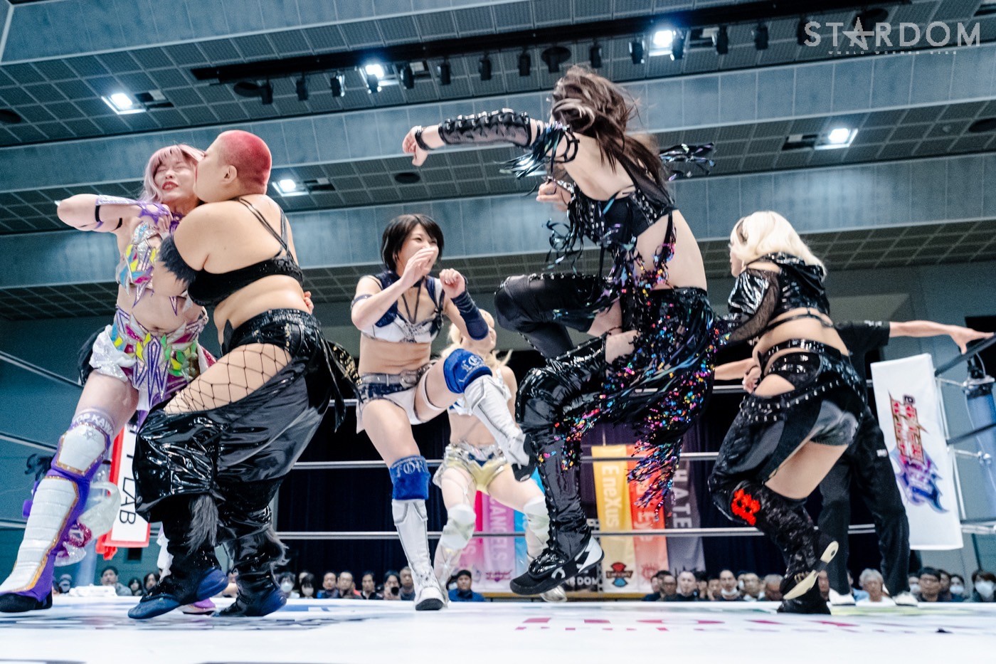 ゴングを待たずに両軍が突進、H.A.T.E.が場外戦にもっていく。上谷は安納、ナツコが中野、琉悪夏がなつぽいを場外でいたぶる。上谷が安納をリングに入れて、ストンピング連打、チンロック。中野がカットしようとすると、琉悪夏が後ろから足を引いて阻止してみせる。上谷が安納にボディースラム、片足でカバー。ナツコが安納へ水を噴射し、ブレーンバスター連発。安納がエルボー連打、ナツコが一発で倒してみせる。琉悪夏が安納の顔面を踏みつけ、ヘアーホイップ、ショルダータックル。安納が延髄斬りを決めて、なつぽいとタッチ。なつぽいは琉悪夏にダイビングボディーアタック、腕十字。琉悪夏がエスケープすると、バックの取り合い。琉悪夏が取るとナツコが介入、なつぽいは鉢合わせにして琉悪夏にドロップキック。琉悪夏がクロスボディーからセントーン。ナツコがなつぽいにセントーン。なつぽいがラリアットをかわしてアームホイップ、ドロップキック。中野がナツコへバックキック。ナツコが串刺しエルボーアタック、ショルダータックル。セントーンを中野がかわし、ドロップキック。足4の字固めを中野がナツコに決めると、なつぽい、安納がサブミッションで援護する。ナツコがエスケープすると、中野がニーアタック。ナツコが返すと、中野がコーナーへ。上谷が止めてナツコがデッドリードライブ、中野がスピンキック、バックを取られたナツコが切り返してラリアット。上谷が中野と打撃のかわし合い。上谷を走らせず、中野がバックドロップ。安納がフィッシャーマン。上谷が返すとナツコがラリアット、琉悪夏がクロスボディー、ナツコがキャノンボール、上谷がニールキック。しかし、安納の肩が上がる。安納と上谷がエルボーの応酬。上谷がフェイントをかけ脚を踏みつける。メルティアが乱入しアシスト、安納が極楽固めに上谷を捕らえる。上谷がエスケープすると、コズエンでトリプルドロップキック狙い。しかしリング下からH.A.T.E.が足を引き、上谷がスワンダイブ式プランチャ。安納が戻され、H.A.T.E.が次々と串刺し攻撃を見舞う。ナツコのエルボースマッシュ、琉悪夏がラリアット、上谷が二段蹴り。カットされた上谷だがミサイルキックを決める。しかし、なつぽいのカットが間に合う。コズエンがH.A.T.E.を場外に送り出し、安納が手を取り中野となつぽいがプランチャ、安納が上谷にミサイルキック。15分経過。コズエンが上谷にカカト落とし、安納がジャーマン。上谷が返すと、安納はタンタンドル狙い。上谷が切り返し後方に投げつける。安納が起き上がると上谷が二段蹴り、スピンキック、旋風脚。返した安納に上谷は、スタークラッシャー狙い、琉悪夏がボックス殴打、上谷がフランケン。しかしコズエンがカット成功。上谷が安納に二段蹴りをかわされ、メルティアがトラースキック、安納がスペシャルポテリングで上谷を押さえ込み、3カウントが入った。
