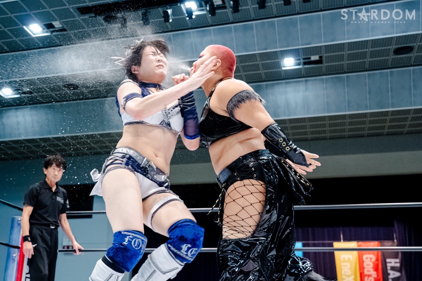 朱里&鹿島沙希&妃南&レディ・C組のゴッズアイと渡辺桃&テクラ&小波&吏南組のH.A.T.E.が8人タッグマッチで全面対決。ゴッデス・オブ・スターダム王座戦が控える王者・桃&テクラと挑戦者・朱里&鹿島には前哨戦だ。