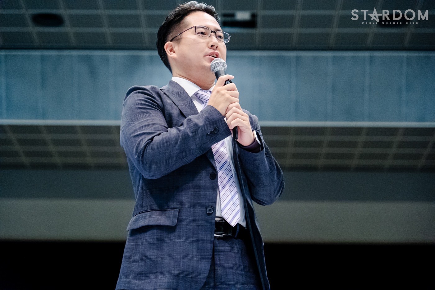 「本日はスターダムにご来場いただきまして誠にありがとうございます。そしてYouTube突然決定しましたが、配信をご覧のみなさまも、ご覧いただきありがとうございます。現在、この上山市ではこの会場の外の地域で大雨の警報が流れております。行きたかったけど行けないという声も聞かれましたし、山形県内で移動を控え対策をおこなっている方もいらっしゃると思いますので、今日は全試合無料放送を緊急ではありますが、決定させていただきました。YouTubeでお楽しみのみなさまも、ぜひお願いいたします。少ない期間ですが、ちょっと見られないよという方もぜひ見ていただきたいと思います。そして、会場にご来場いただいた方、お住まいの地域とかお友だちのところでとかあると思いますが、今日の大会、全力で盛り上げますので、ぜひ会場のなかでも盛り上がりをぜひ楽しんでいただければと思います。いきなりの決定でございますが、ぜひ会場の方楽しんでいただいて、YouTubeの方も楽しんでいただいてと、そういう一日になればと思っておりますので、またいい天気のときに上山に来たいと思いますので、今日来てくださった方はお友だちにYouTubeやってるよ、今日これ見に行ったんだよと言っていただいて、楽しんでいただければと思います。それでは今日も、選手への熱いご声援、拍手など、どうぞよろしくお願いいたします」