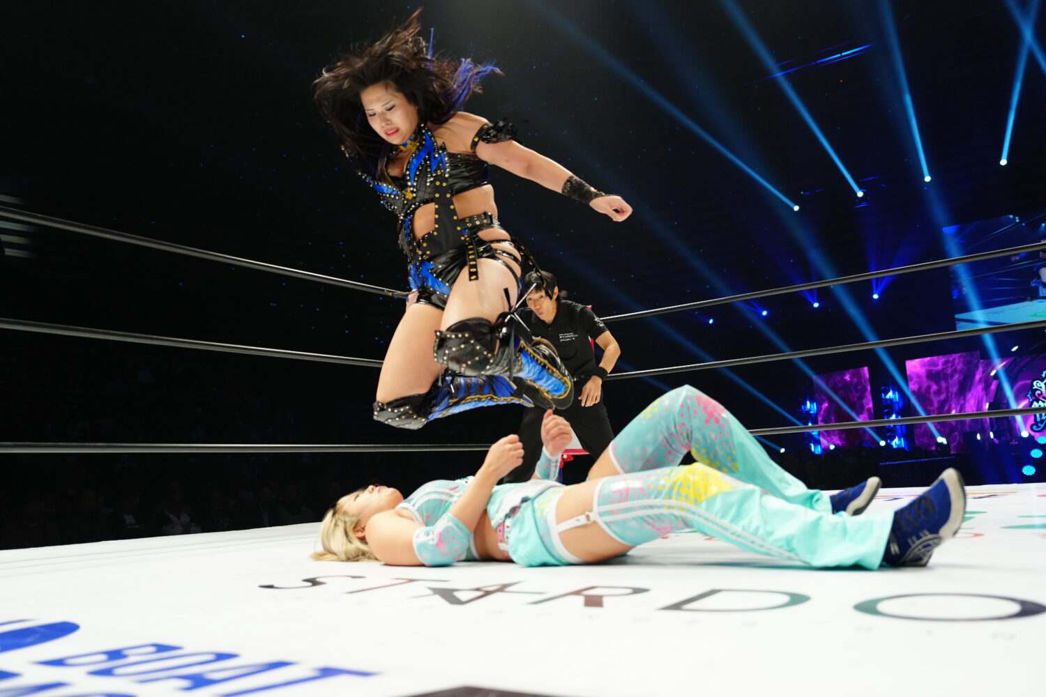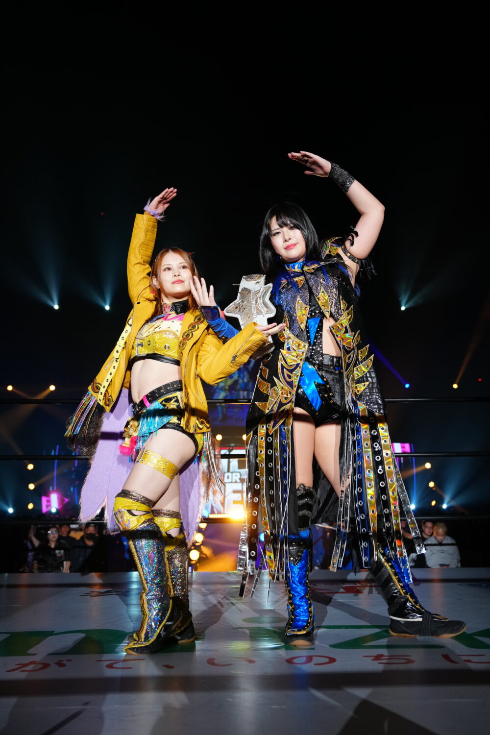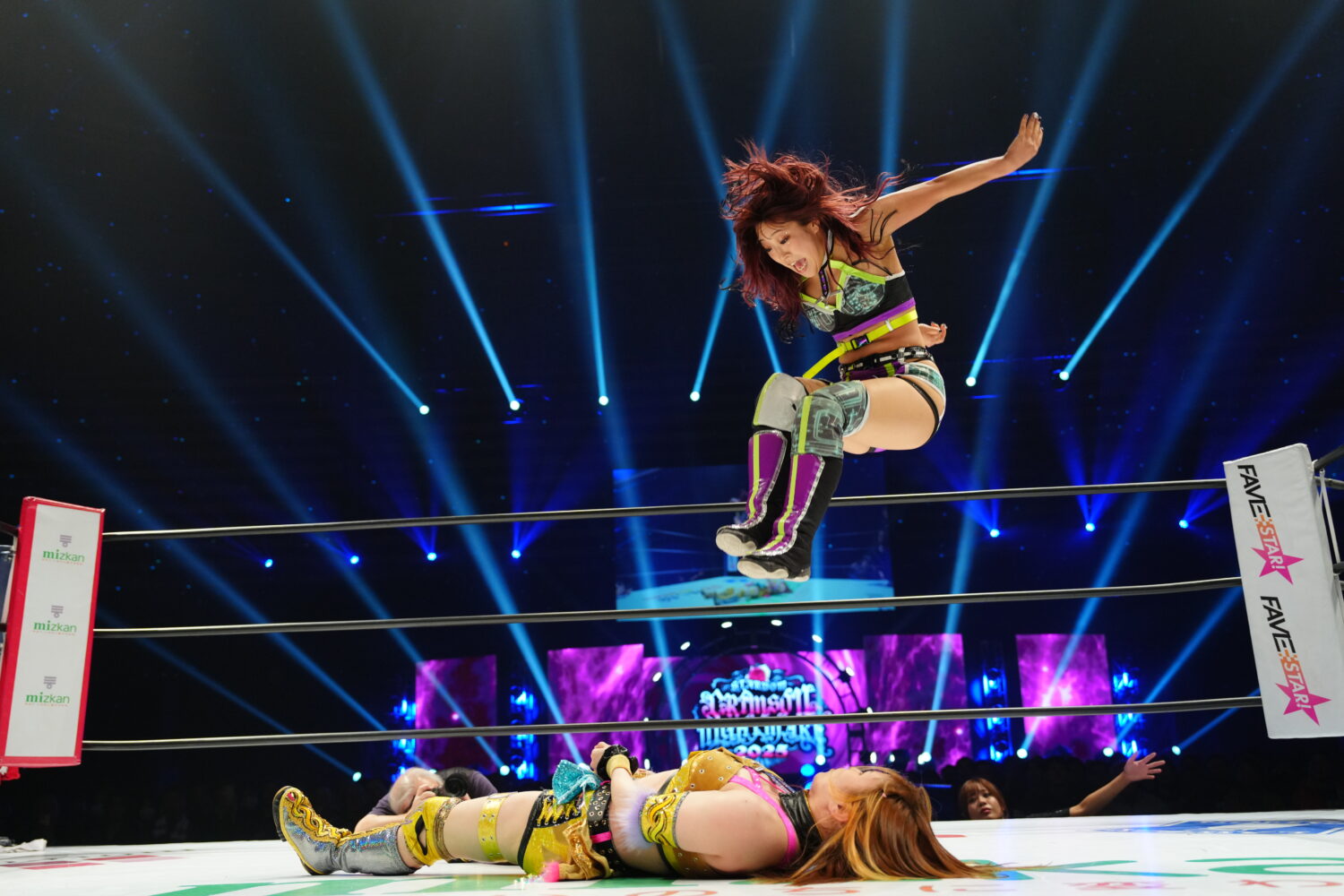 AZMと月山が先発、月山がロープワークでヒップドロップ、天咲が乱入してAZMとドロップキックで合体、AZMは月山にサッカーボールキック。月山が返すと、天咲が串刺しエルボーアタック、ドロップキック、DDT。月山が返すと、天咲がサブミッション。月山がエスケープすると、ヒップアタック。HANAKOがショルダータックル連打も、天咲が返す。HANAKOがアルゼンチンにいくとAZMがカット。HANAKOは次々と串刺し攻撃で相手を分断。天咲がHANAKOへDDT。HANAKOが2発目をこらえて持ち上げる。天咲が切り返してDDT、HANAKOがショルダータックル。AZMが背後から飛びつくが月山が丸め込み。AZMも切り返すが、月山も切り返す。HANAKOがAZMにボディースラム、月山がクロスボディー、合体ヒップドロップ。AZMが返すと月山はヒップバット連打。AZMが月山の突進をかわし、天咲とキックの競演、AZMがミサイルキック、ワキ固め、腕固め。月山がエスケープすると、AZMはダイビングフットスタンプへ。月山がかわすと、HANAKOが介入、しかし天咲がDDTで分断。月山がAZMを丸め込み。AZMが返すとハイキックをぶち込んでダイビングフットスタンプ投下。しかしHANAKOがカットする。HANAKOはAZMを持ち上げるが天咲がカット。しかしHANAKOがブレーンバスター、AZMにラリアット。月山がオースイにいこうとするも、AZMが切り返して丸め込んだ。