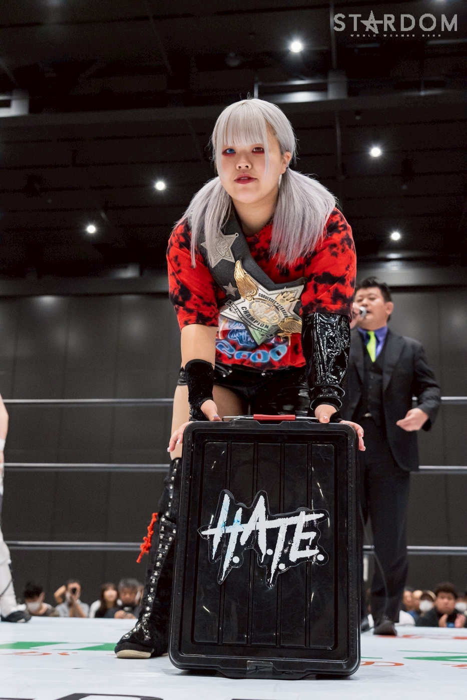 山下「アキラはな、いまは結果がなかなか出ないのに、ミ・ヴィダ・ロカのチームとして、仲間として、一人前に、絶対に一人前にしてやるよ! H.A.T.E.のみなみなさま、アキラがバリバリに強くなったときに3カウントを取られるの首を長くして待っとけよ! アキラと明日の大阪でシングルマッチします。アキラ、私はゴッデスのベルトも取るし、オマエのことからも絶対に目を離さない。関西圏のみなさん、姫路からアゼリア大正、来れる範囲ですよね。明日のアキラとのシングルもですが、アキラの成長とミ・ヴィダ・ロカから、絶対に目を離すなよ!」
