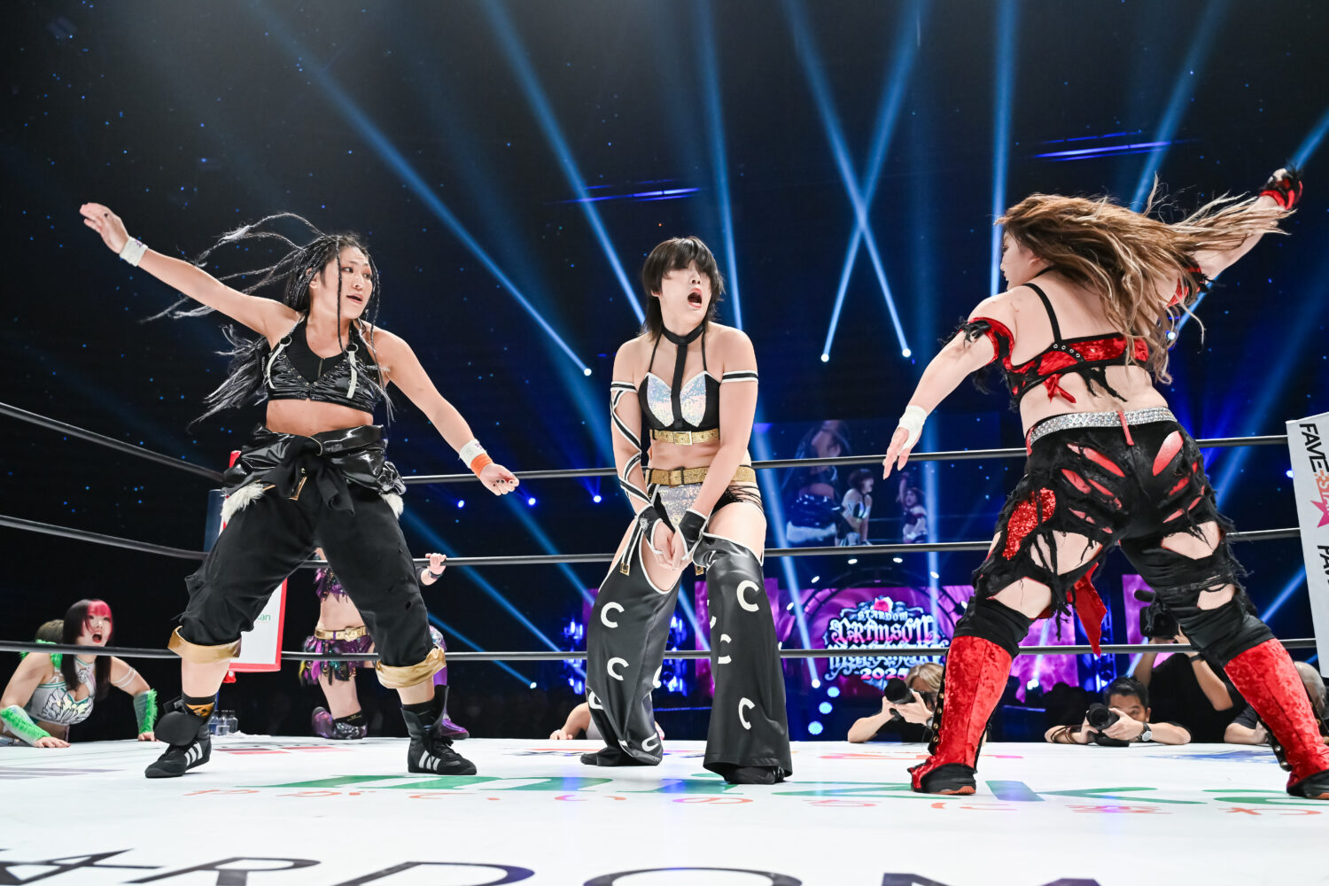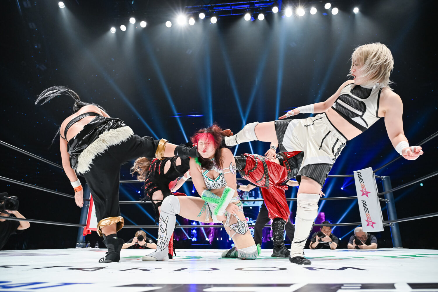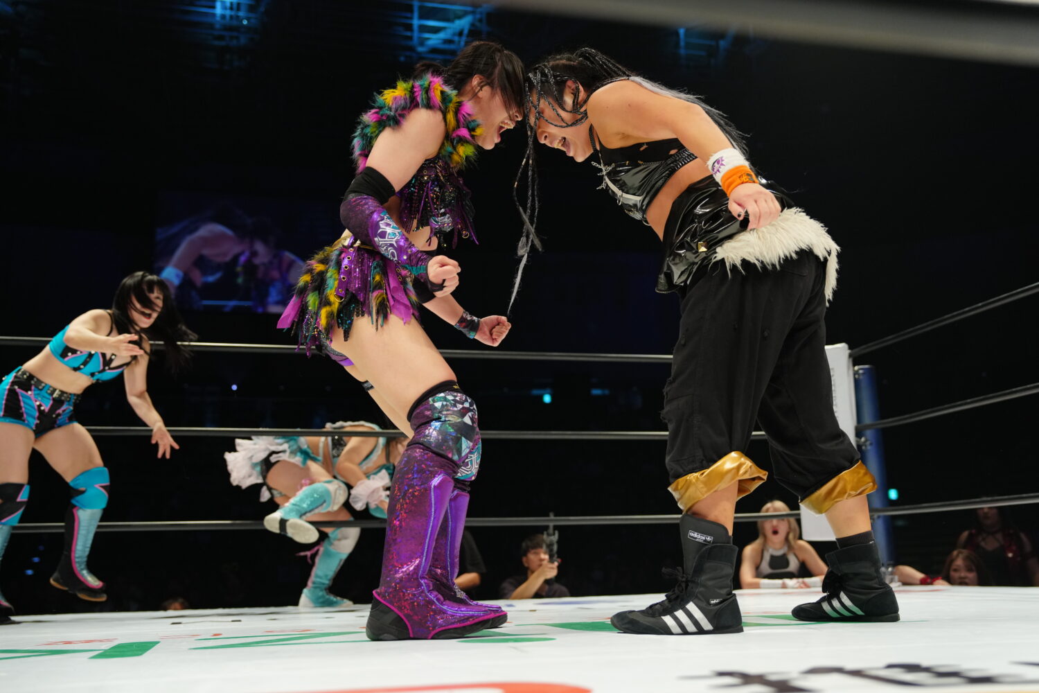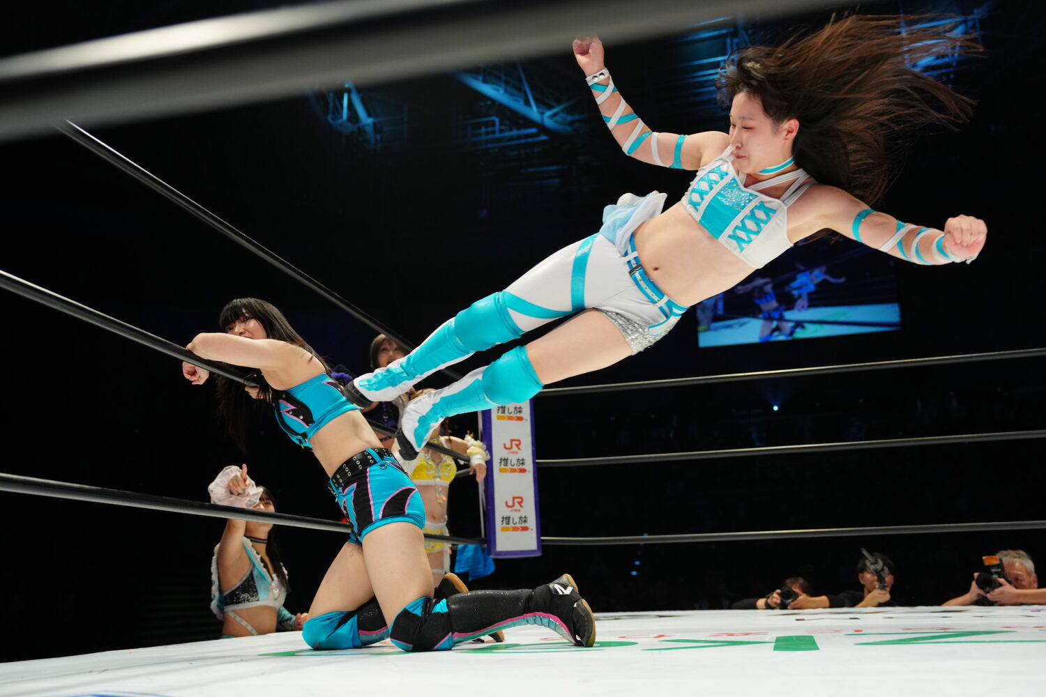 この試合は、タッチをかわさずともリング内にいる選手に試合権利のあるノータッチルール。青木が「ウチはエマちゃんを出すぜ」。さくら、虎龍、儛島の先発でスタート。儛島がさくらにドロップキック。虎龍とさくらが蹴りのかわし合い、さくらも加わり威嚇しあう。なつぽい、妃南、青木がリングへ。青木がかかってこいと挑発すると、なつぽいと妃南が共闘してドロップキック。青木が2人を誘い、まとめて河津落とし。MVLがなつぽいを捕獲しヘアーホイップの連続、儛島、アキラがドロップキック。山下がボディースラムで叩きつけ、MVLをアピールする。なつぽいがアキラをかわし、安納とダブルのドロップキック。コズエンでドロップキックを連打する。ゴッズアイがコズエンを丸め込み。返されるとサブミッションの競演。MVLがカットし、アキラが妃南にドロップキック連打。妃南が返すと、アキラをブロックして払い腰。青木が妃南を捕まえるが、安納もアキラを捕まえる。水森が入り妃南、アキラにラリアット連打、妃南にギロチンドロップ。レディと妃南がネックブリーカーの競演、山下と青木が妃南とレディを止めて鉢合わせに。山下と鈴季がレディにエルボーの挟み撃ち。しかし朱里がカットする。朱里は鈴季とや間下にコードブレイカー、山下にサッカーボールキック、PKは山下が止めて朱里と打撃の応酬。朱里が山下にジャーマン、ニーアタック、エルボーが交錯するとさくらと玖麗が介入してコズエンで連係攻撃、玖麗が朱里にスピア、水森がスーパーガール。妃南と虎龍がキックの競演で分断。レディと壮麗が水森に合体ブレーンバスター、壮麗が水森にラリアット。水森が返すと、壮麗の突進に青木がラリアット、儛島がボディーアタック、MVLがキックで競演し、鈴季が壮麗にテキーラショット。しかし、レディがカットする。鈴季が壮麗にジャーマン狙い。壮麗が切り返すと安納がミサイルキック。10分経過。コズエンがコーナーから一斉ダイブ、安納が壮麗にミサイルキック。壮麗が返すと、安納がバックを取る。壮麗が切り返してラリアット。安納が返すと、壮麗がブルーサンダーの構え。コズエンが勝っといてカカト落としの競演。そこから安納がスペシャルポテリングで壮麗を押さえ込んだ。