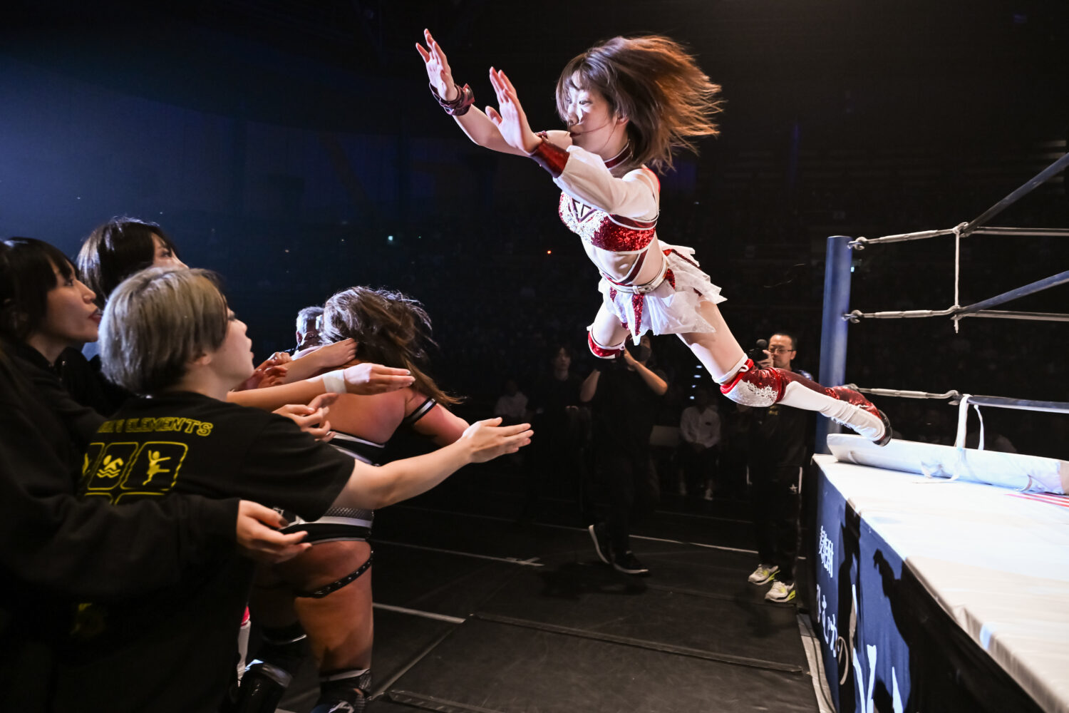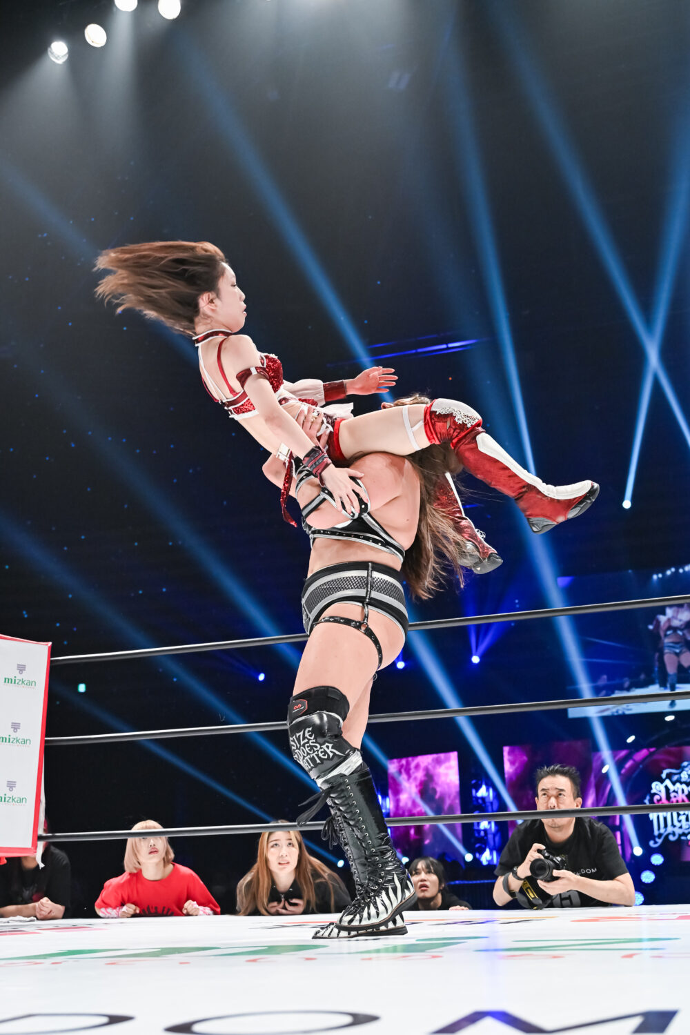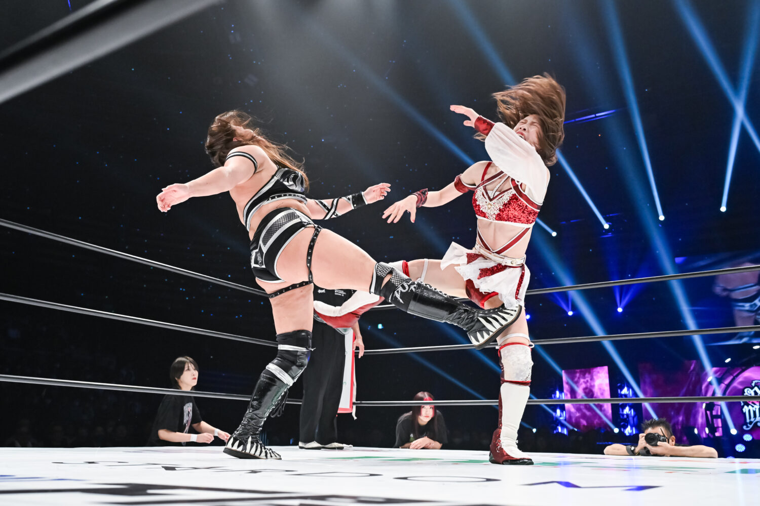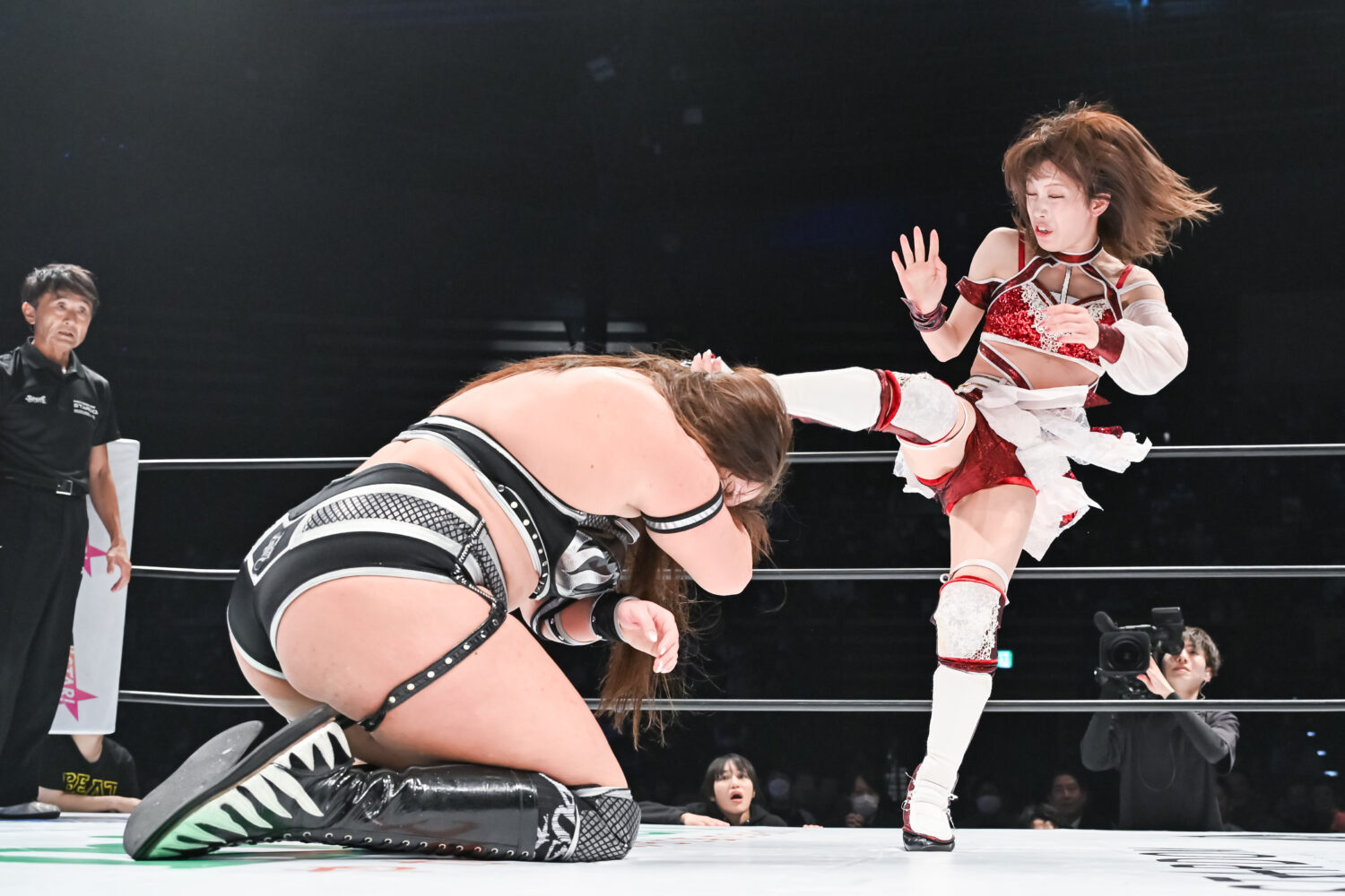 因縁の鹿島沙希とボジラがついに一騎打ち。ボジラにビビりまくりの鹿島だが、秘策はあるのか? 2日前の千葉大会では「ゴッズアイオールメンバーキルユー」と挑発した鹿島だが…。