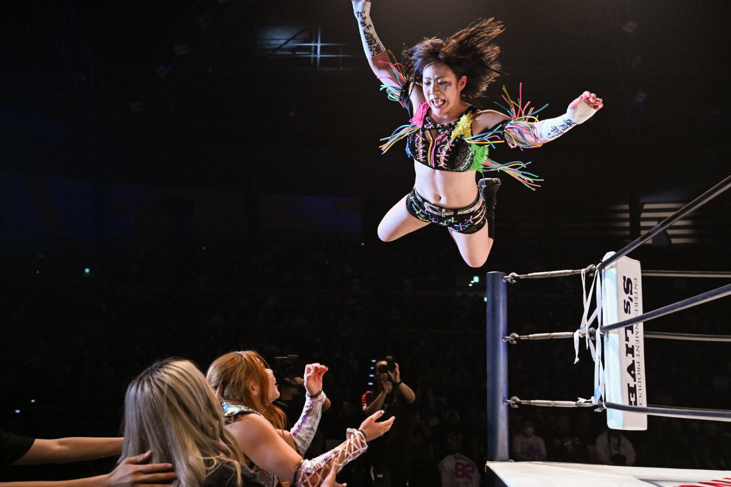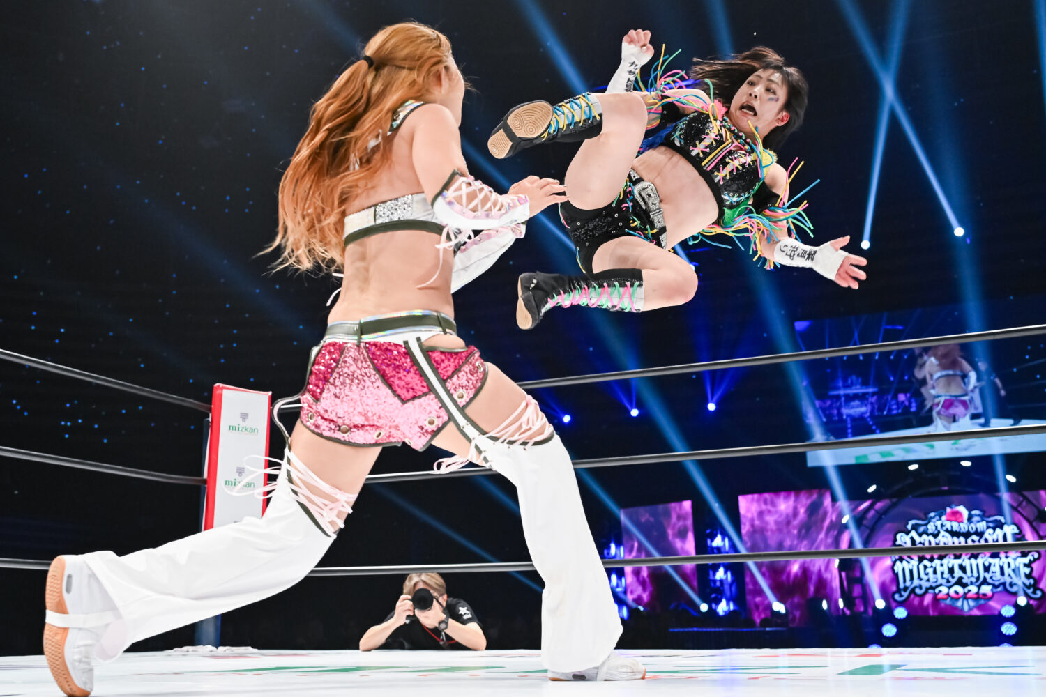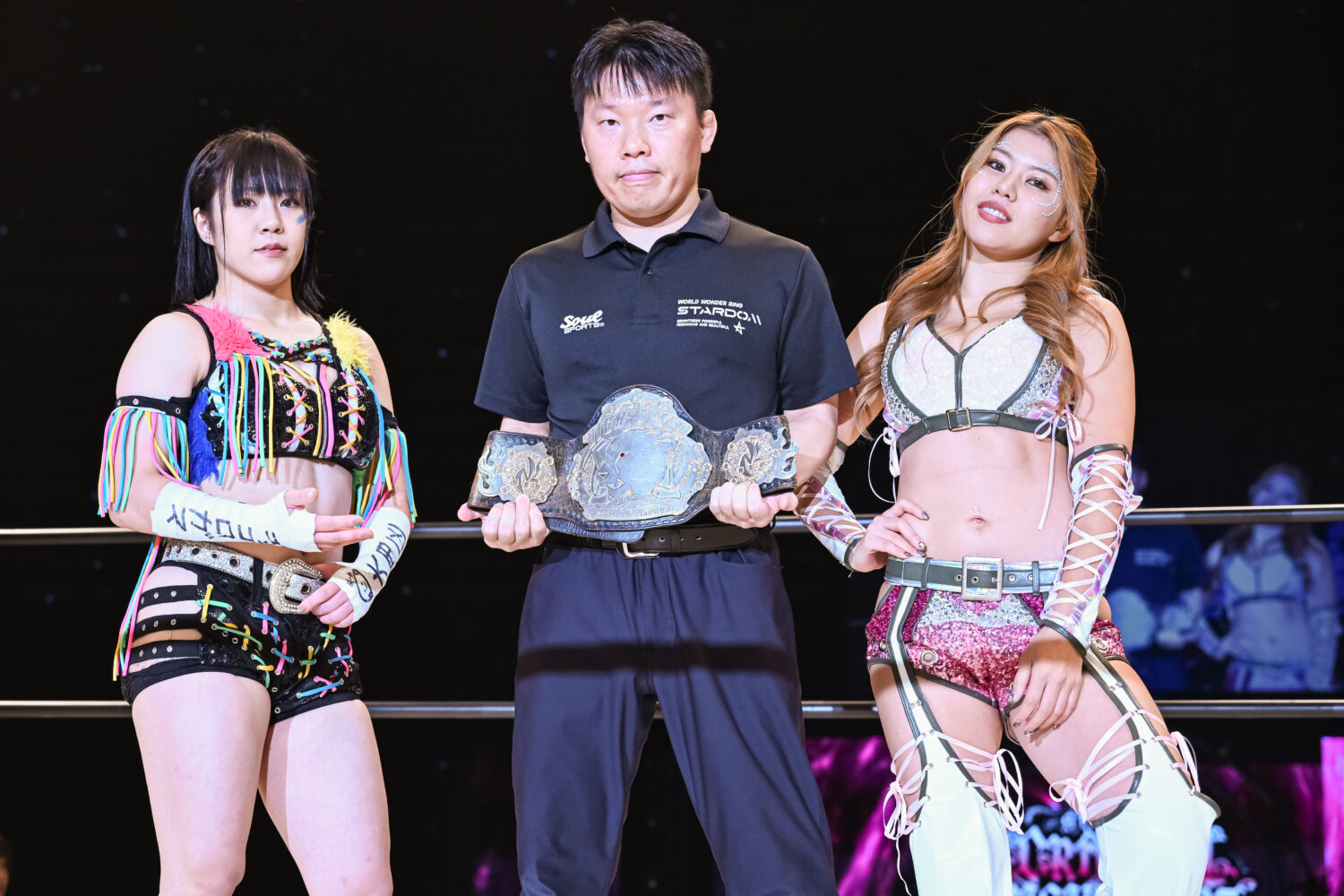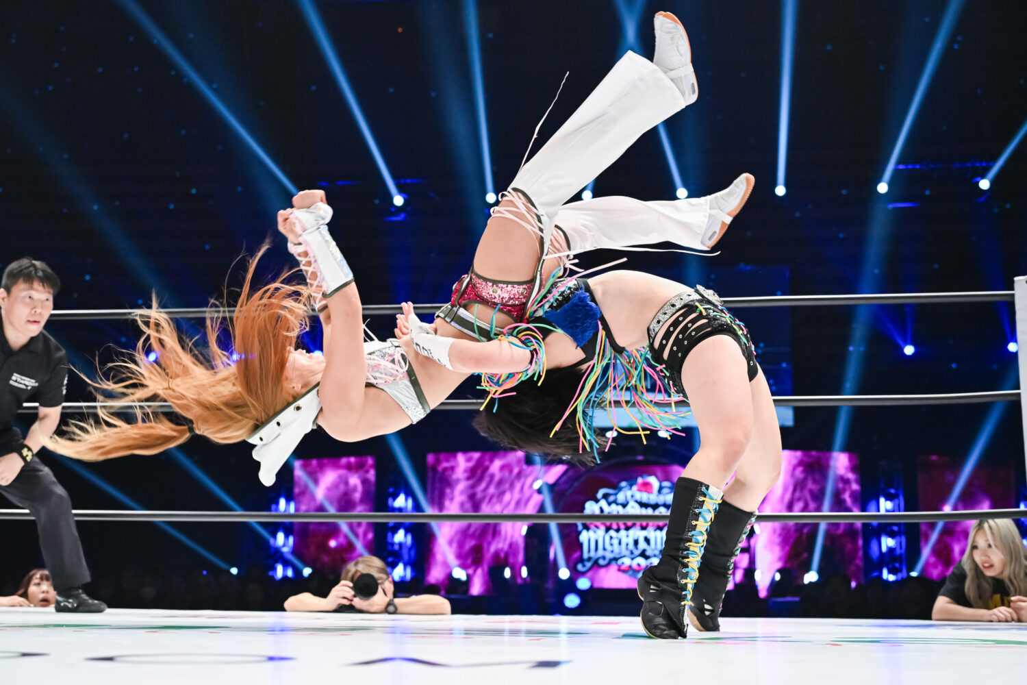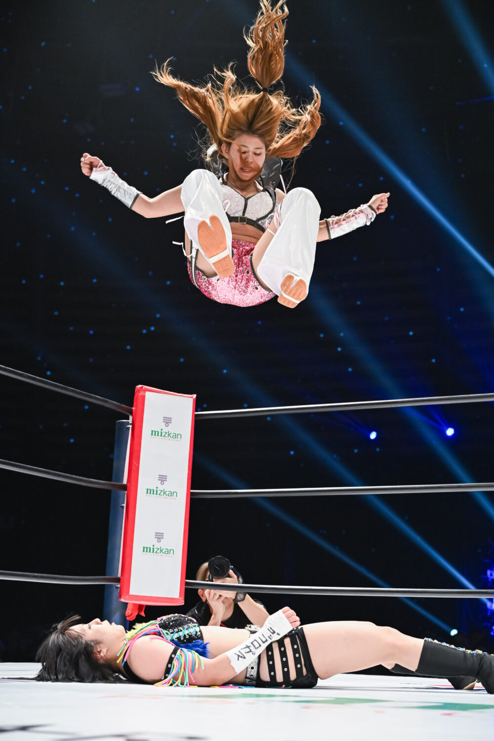 星来「今日、本当に試合前、緊張してて、もういま、ちょっと安心しました。本当に自分は不器用で、すぐ結果を出すということがあまりできないんですけど、ちゃんと自分のペースで、芽依のハイスピードで、このベルトの価値上げていくんで、みなさんついてきてください。ありがとうございました」
