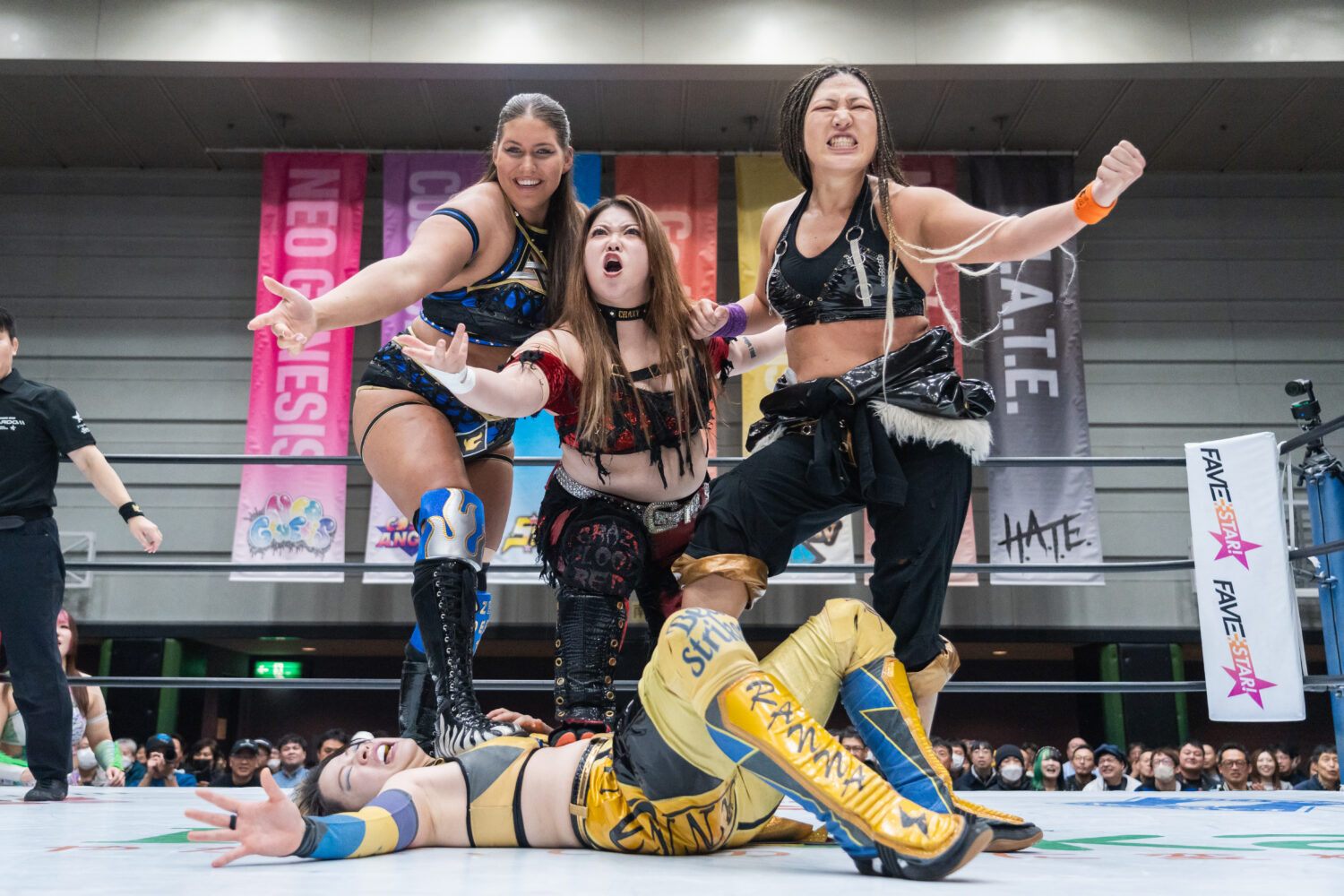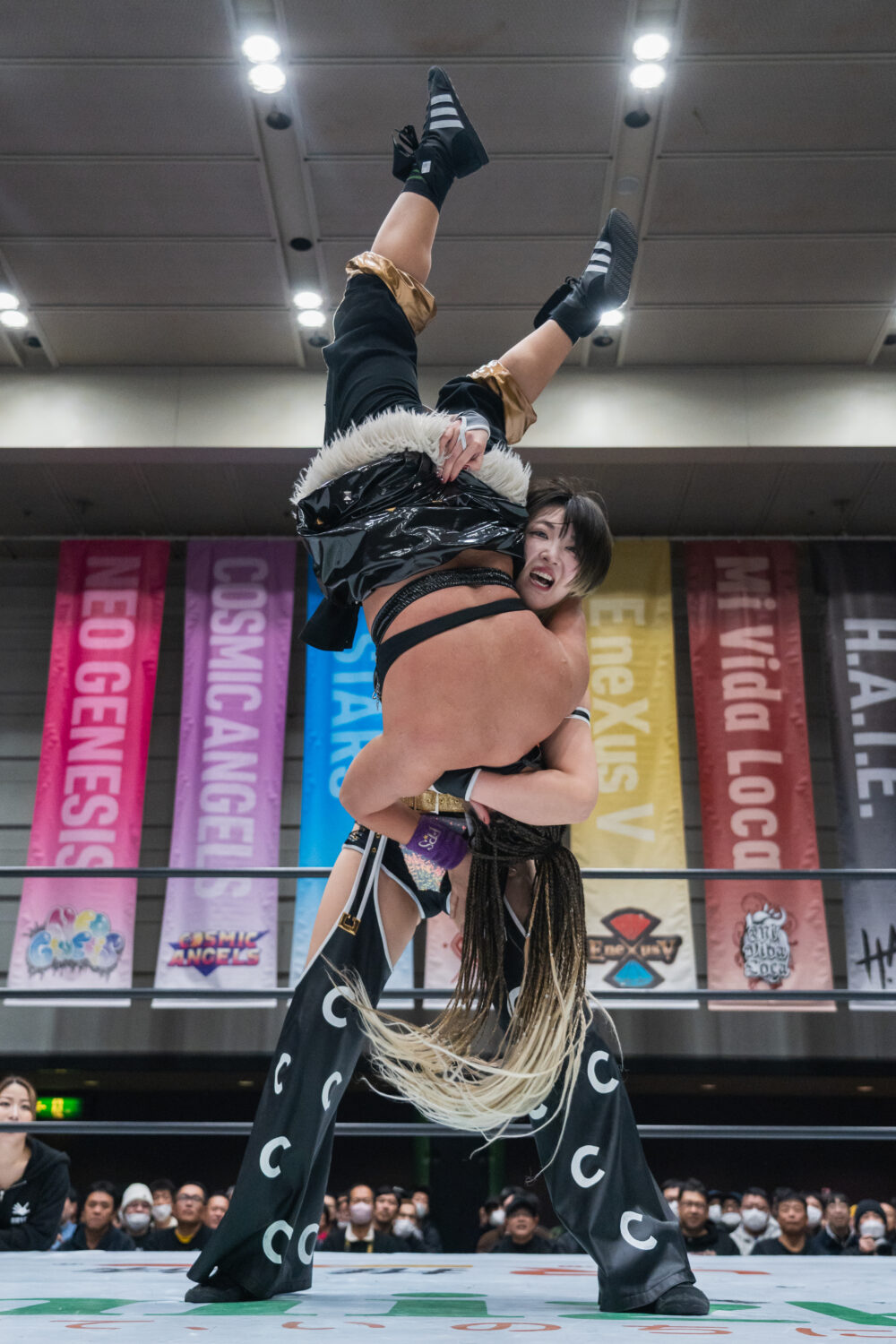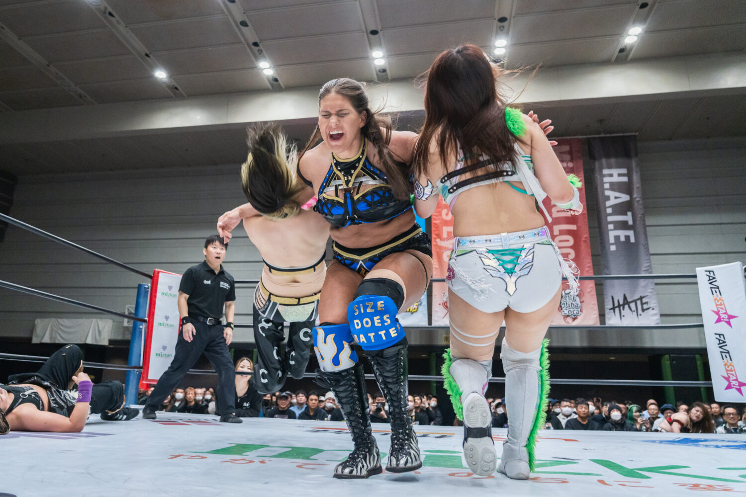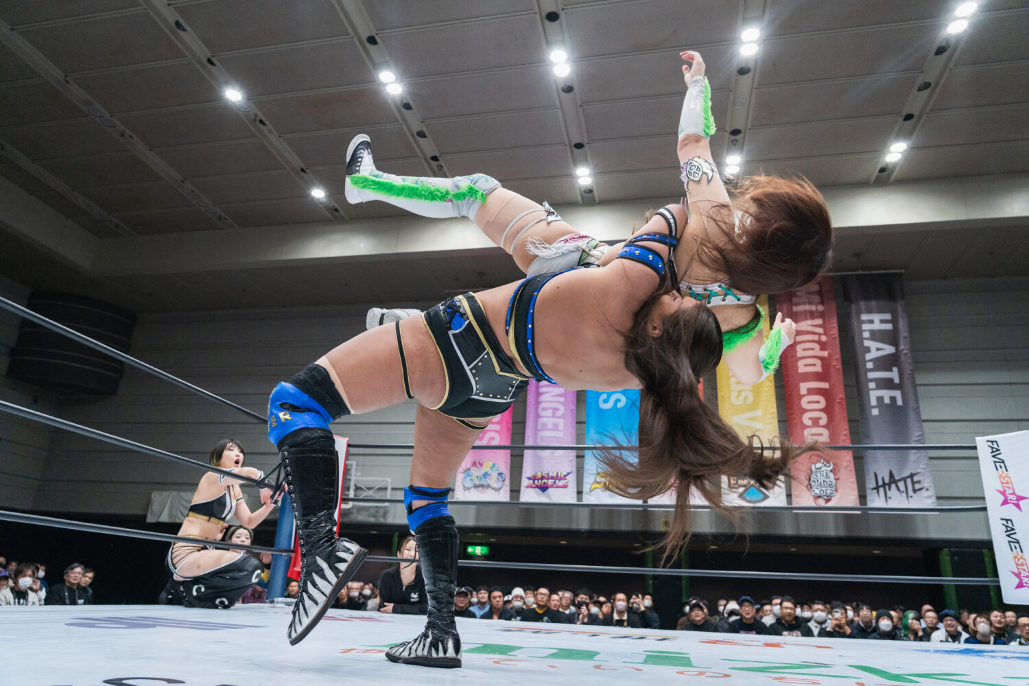 壮麗亜美&妃南&レディ・C&八神蘭奈組vs鈴季すず&山下りな&ボジラ&鉄アキラ組の8人タッグマッチから壮麗亜美&レディ・C&八神蘭奈組vs鈴季すず&山下りな&ボジラ組にカード変更。ゴッズアイとミ・ヴィダ・ロカが正面から激突する。