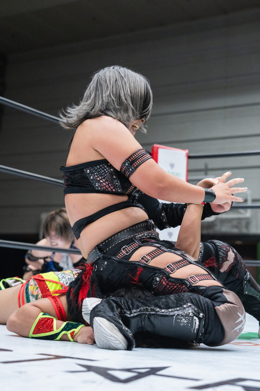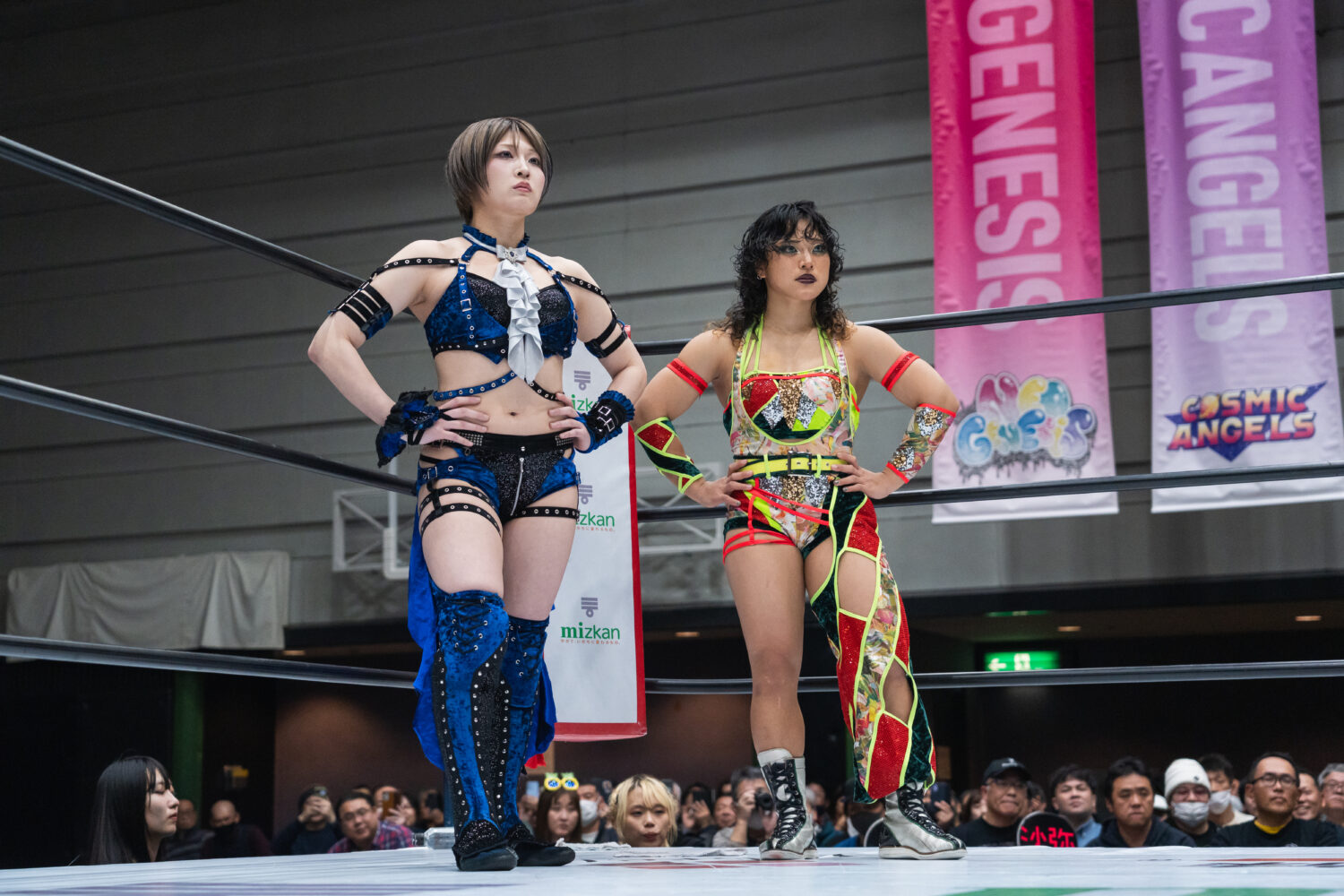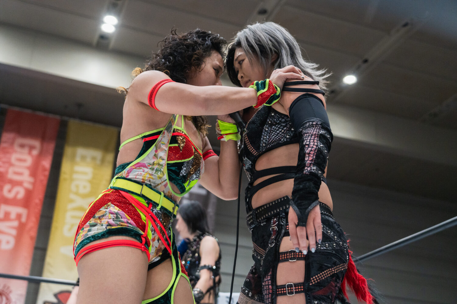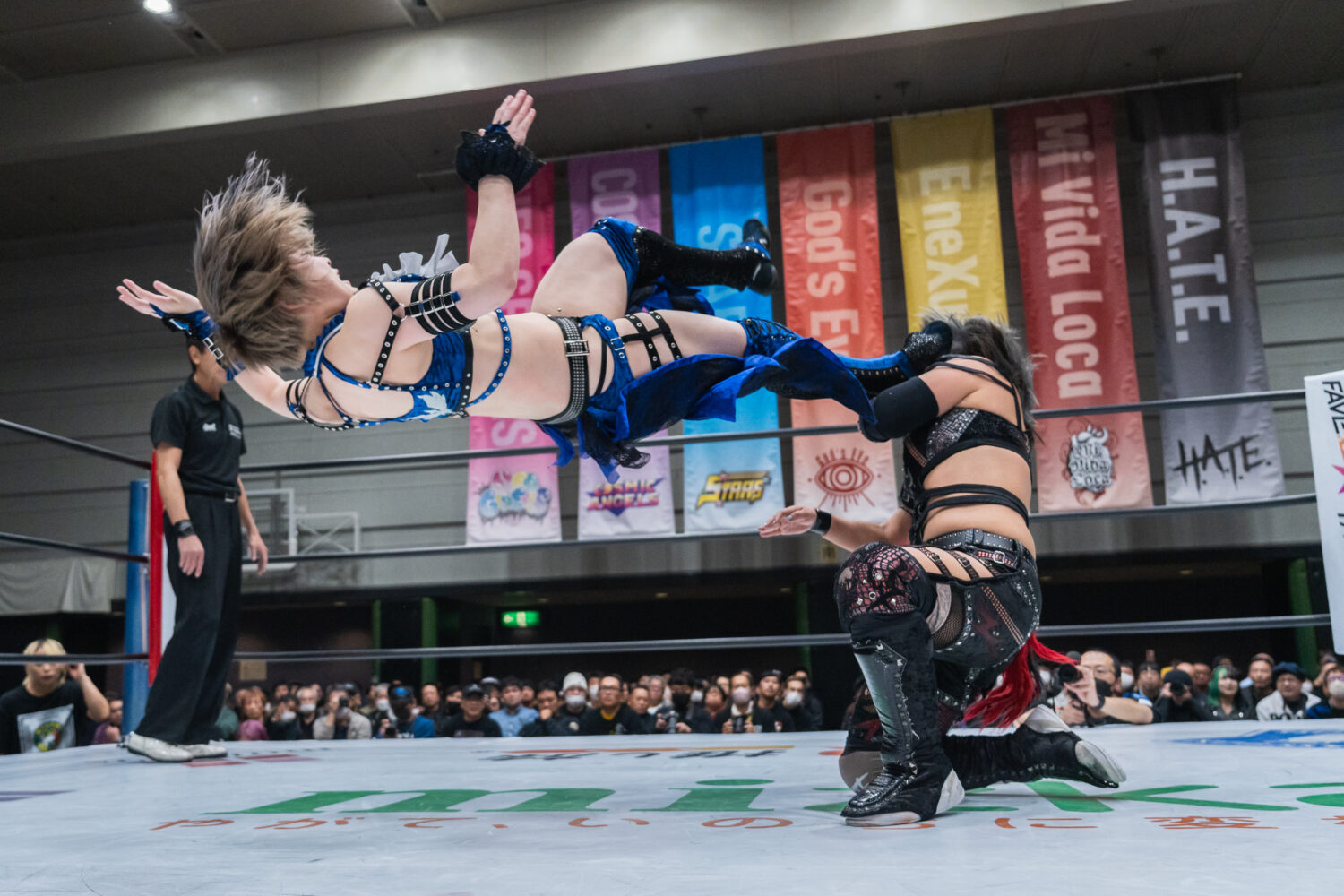 安納サオリと飯田沙耶が組んでH.A.T.E.の上谷沙弥&小波組とタッグマッチで対戦。安納は上谷のワールド・オブ・スターダム王座、飯田は小波のワンダー・オブ・スターダム王座に12・29両国で挑戦。連日にわたる前哨戦だが、今回は赤と白の王者と挑戦者が正面からぶつかることとなる。