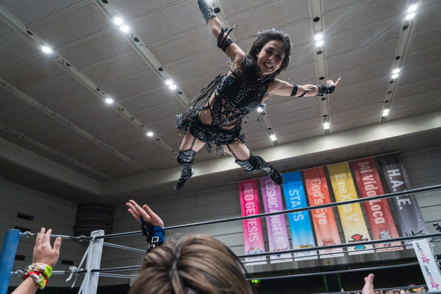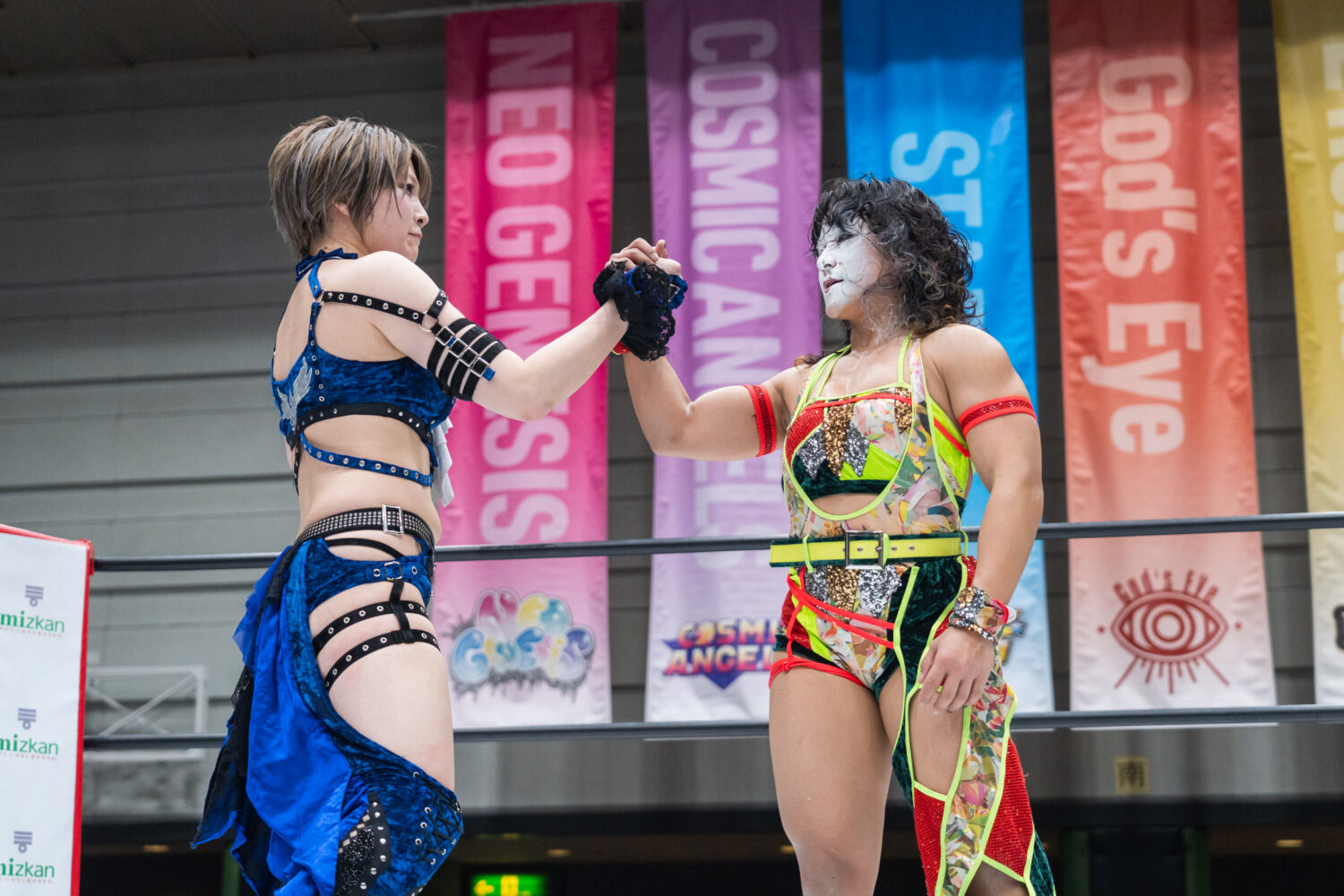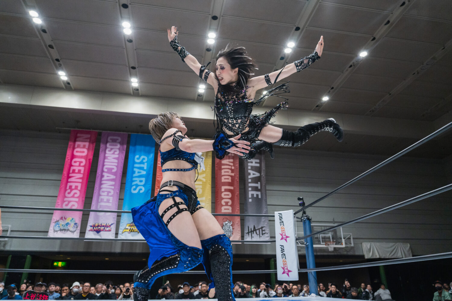 安納「飯田、ありがとう。飯田と力を合わせるようになってホンマに心強い。同じ気持ちになってるっていうことがすごい力になってるし、私たちだけじゃない。さくららも朱里も、ほかのベビーのみんなもそう。みんな同じ目標を持ってこのスターダムを変えようと思って闘ってる、リングに立ってる。やってやろうよ」