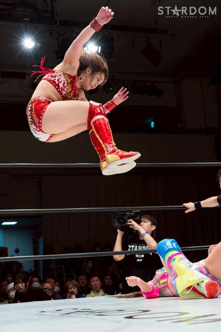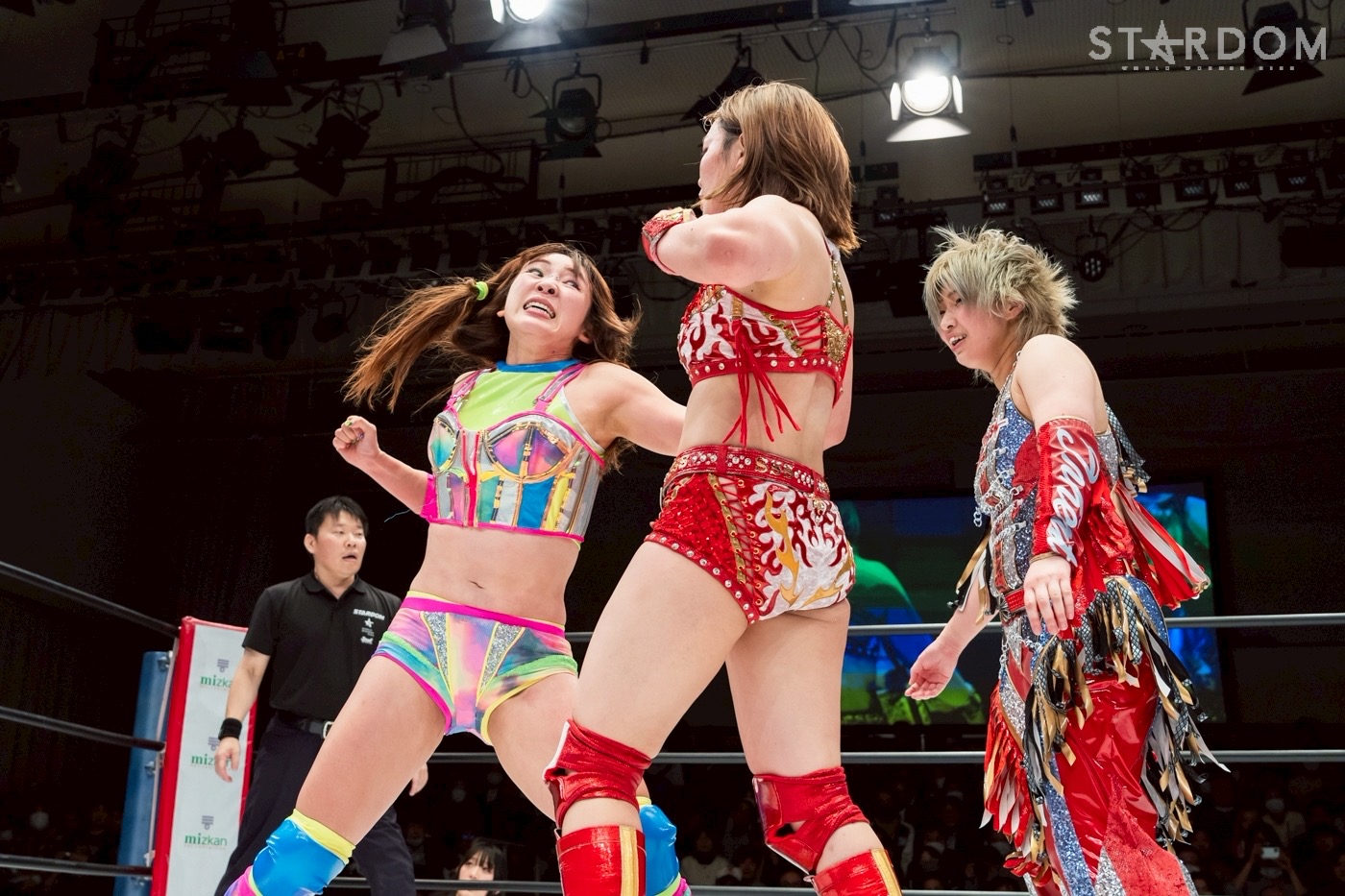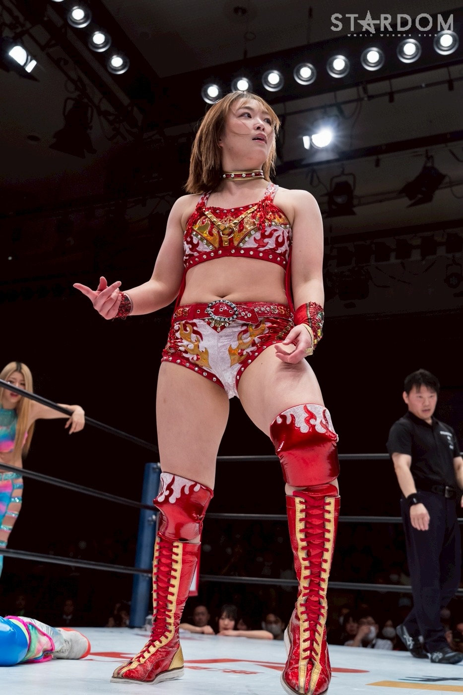 先発でSareeeと対峙すると、あいさつ代わりのチョップを浴びる。ひるむことなくドロップキックを放っていったが、強烈な一発で倍返しされてしまう。さらに彩羽の逆エビ固めで捕まったまま、Sareeeに両手を踏みつけられ悶絶した。