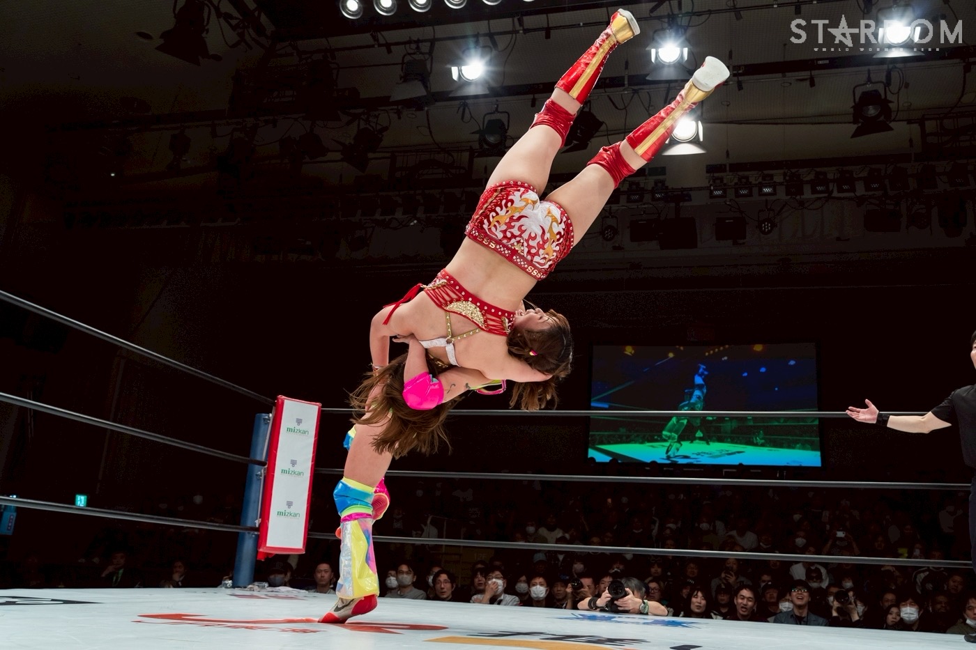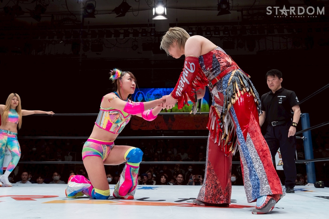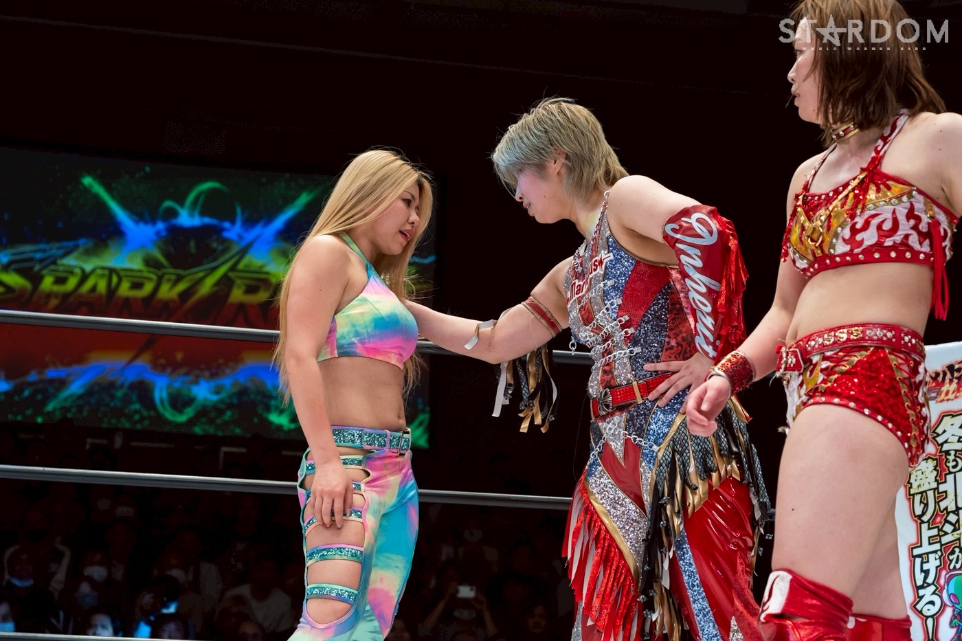 先発でSareeeと対峙すると、あいさつ代わりのチョップを浴びる。ひるむことなくドロップキックを放っていったが、強烈な一発で倍返しされてしまう。さらに彩羽の逆エビ固めで捕まったまま、Sareeeに両手を踏みつけられ悶絶した。