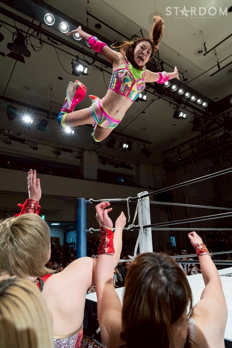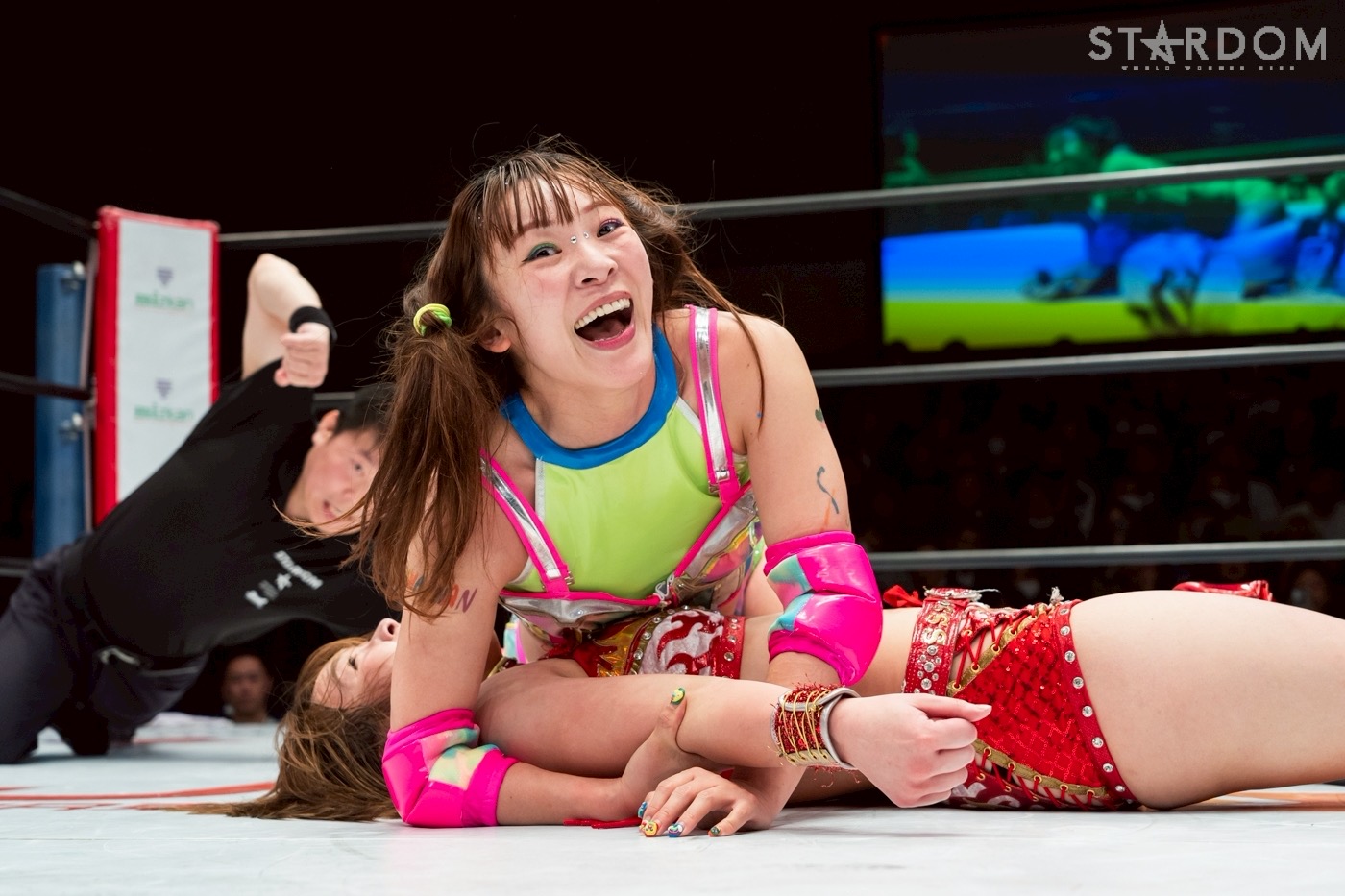 その後も卍固めから、葉月との合体ドロップキック、滞空時間の長いブレーンバスターを炸裂。デビュー2か月の新人とは思えない多彩な攻めで敵軍にくらいついた。
