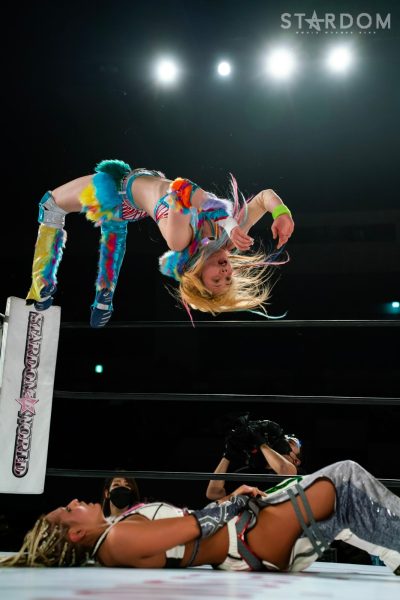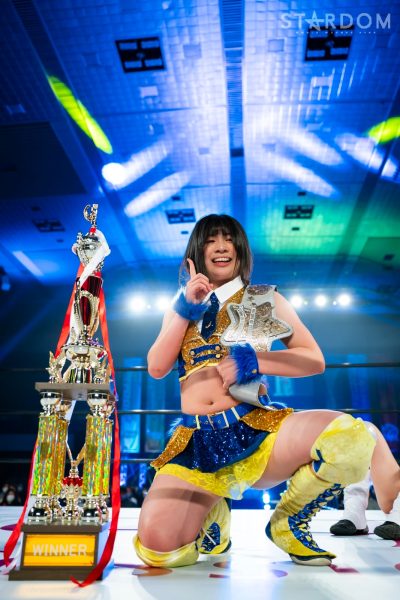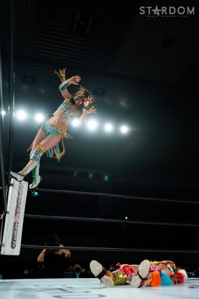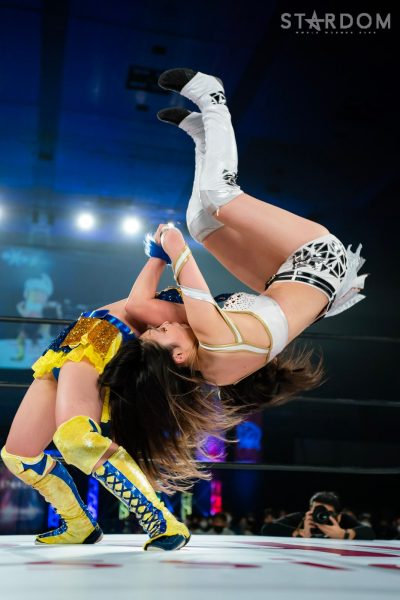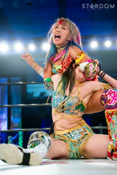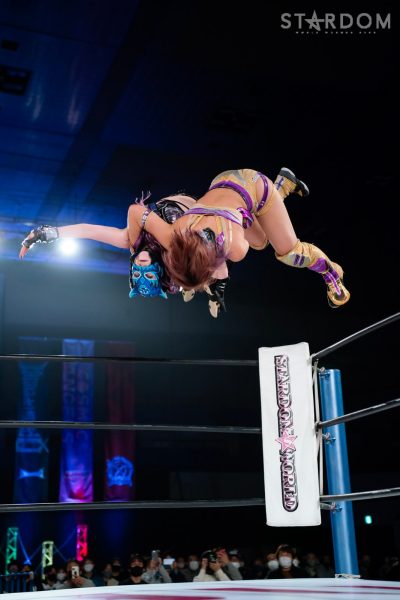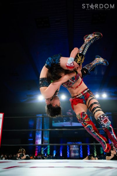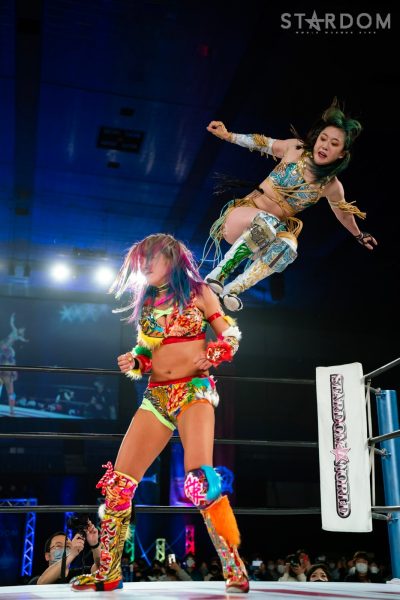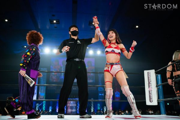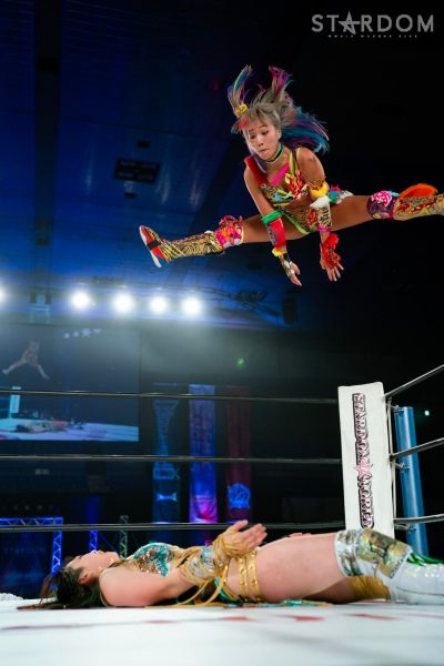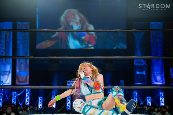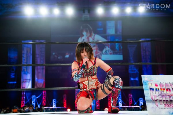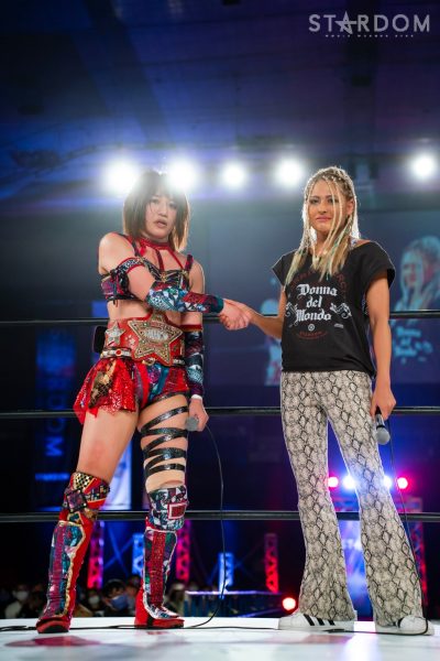 「2022年、スターダム最高峰の赤いベルト初防衛しました。MIRAIとはドンナ・デル・モンドのメンバーとしてこれから一緒にどんどん高め合っていきたいし、これからのMIRAIがすごく楽しみだなと思いました。そして、次の防衛戦、両国国技館2DAYS。最高、最強の相手に決定しました。自分の限界を超えさせられる2日間になると思ってます。1日目はジュリア、2日目は岩谷麻優。私にとって特別な存在です。そして、このスターダム最高峰の赤いベルトのチャンピオンとして絶対に勝たなければならない相手だとも思ってます。その2人に勝利して私は絶対王者になります」