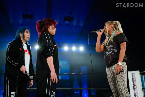 世羅「なんだよ、せっかくケンカ売りに来てやったのによ。(すずに)大丈夫? …まあ、そういうことですよ。ケンカ売りまくるって言ってて、この団体に乗り込まないのはウソでしょ。この団体でしょ、乗り込むならさ。プロミネンス、かき回してやるよ。我々ハードコアデスマッチ女子プロレスユニットと言ってるけど、別にそれだけじゃないんで。それだけでやってきたメンバーじゃないんで。全員でスターダム、両国2DAYSあるんでしょ。おもしろくしてやろうじゃん。ぶっ潰してやるよ。楽しみにしといてください」