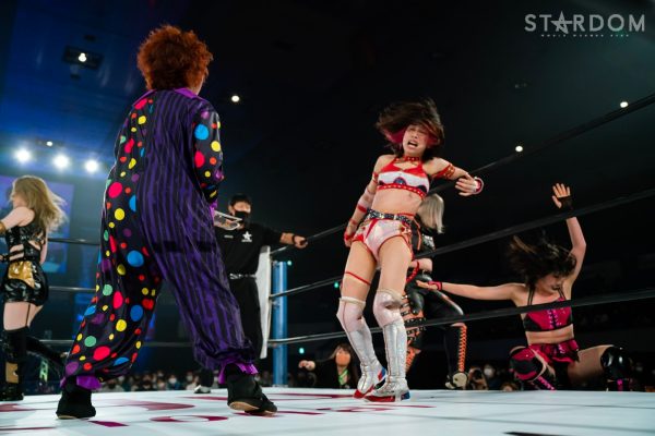 当初は7人参加のバトルロイヤルが発表されていたが、桜井まいと月山和香が欠場、7人参加のバトルロイヤルから5WAYマッチに変更された。出場選手は向後桃、鹿島沙希、琉悪夏、フキゲンです★、吏南。1・23大阪でスターダムに初参戦、そのままSTARS入りを果たした向後にはいきなりの大試練。事実上の1vs4ハンディキャップマッチだが…。