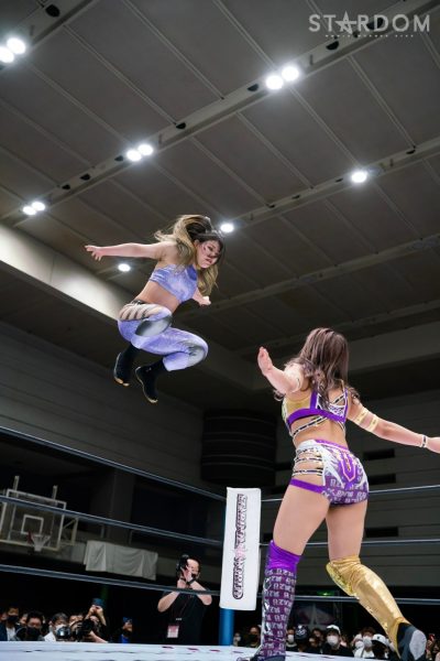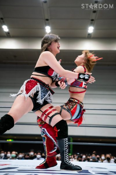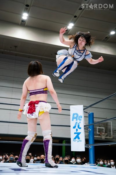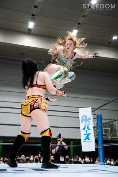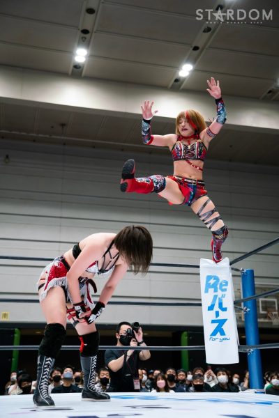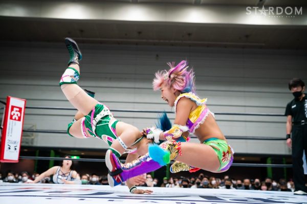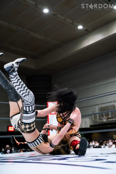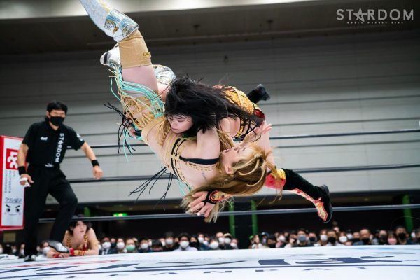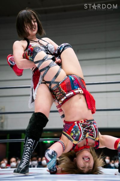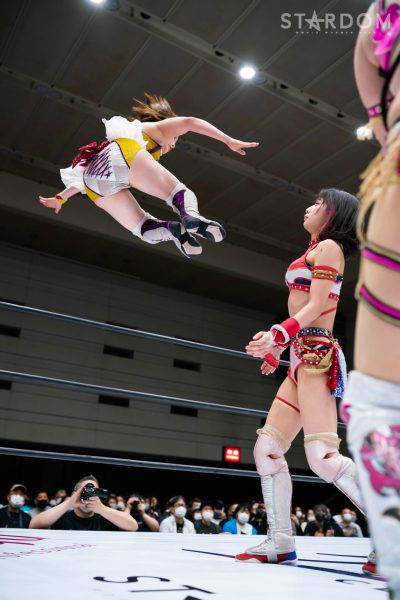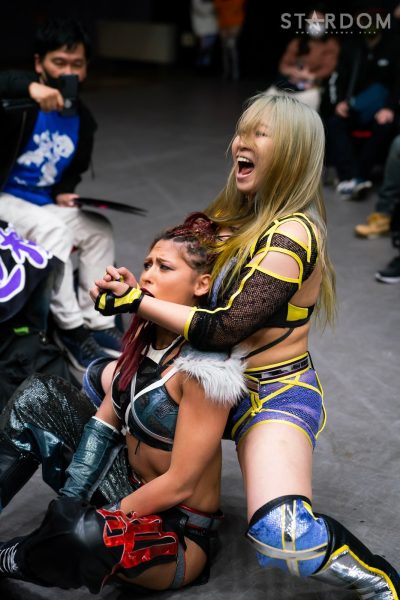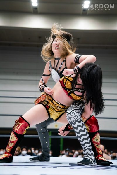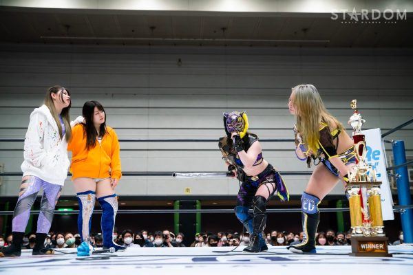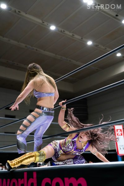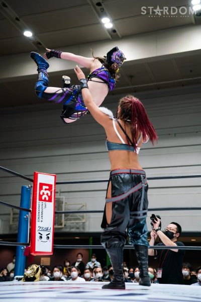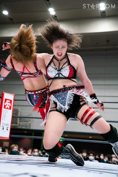 God’s Eyeの結成第2戦目は大江戸隊との対抗戦。スターダム内で王座戴冠歴を持つ大江戸隊の2人にGod’s Eyeの若手2人がどこまで爪痕を残せるか。