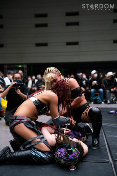 試合を終えてもなお凶器でジュリア&テクラを攻撃しようとするBLACK DESIREをDDMセコンドが必死に引き剥がし、ジュリア&テクラを控室まで護送していった。