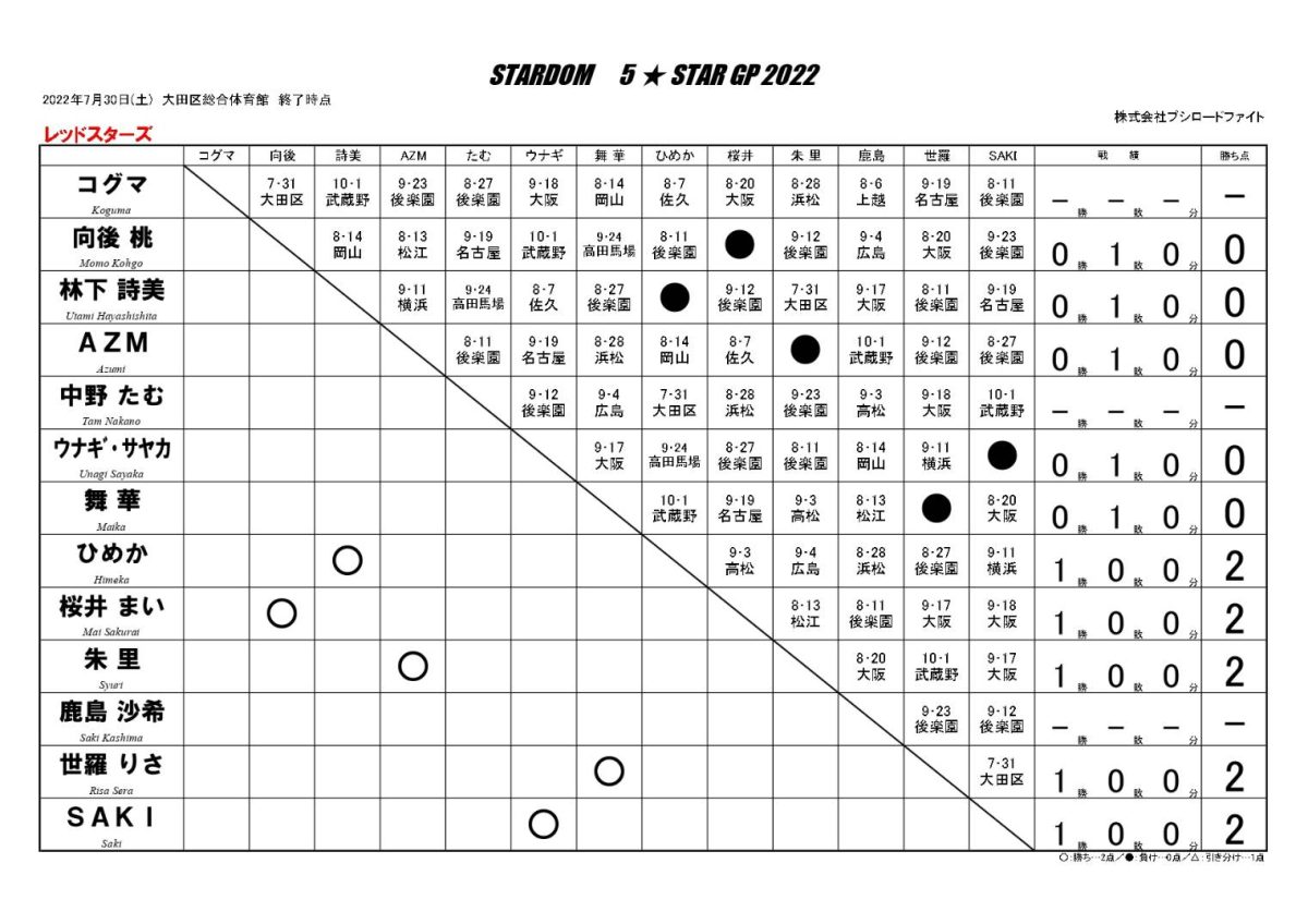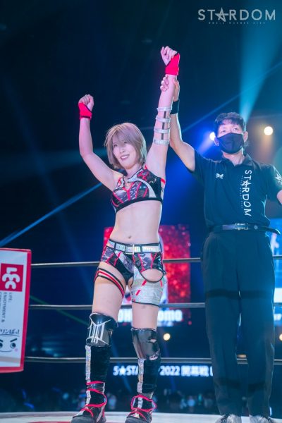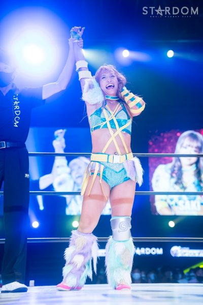 SAKI「4月にこの大田区に来て、こうしてここで5★STAR GP推薦枠として初戦、勝利ができたことすごく、すごくうれしく光栄に思います。コズエンがCOLOR’Sを連合軍として認めてくれたからいま私がここにいて、いまこうしてここで大好きなプロレスができました。きょうウナちゃんと絆深められたと思うので…」