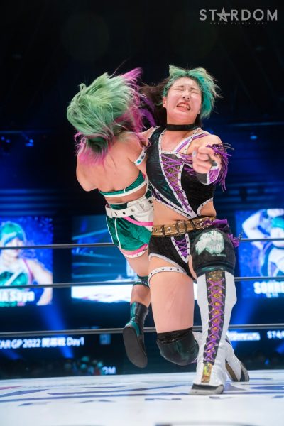 ウナギ・サヤカとSAKIの公式戦。COSMIC ANGELS&COLOR‘S連合軍の同門対決となるが、両ユニットの結託はまだ始まったばかり。同門対決というよりは個人での闘いという意味合いが大きいだろう。SAKIは7・24名古屋で上谷沙弥のワンダー・オブ・スターダム王座に挑戦も敗退。5★STAR GPは、スターダムで闘っていく上での仕切り直しのチャンスとなるが…。