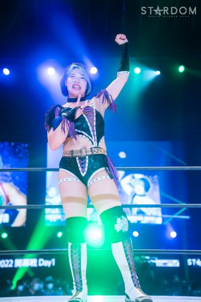 「5★STAR初戦、勝ち星を飾ることができました。飯田沙耶とは以前シングルしたことがあるんですけど、そのときはお互い真っ向勝負という感じだったんですけど、今日は飯田沙耶もアタマを使ってきましたね。でも、それを上回る私もしっかりアタマを使って対策を考えてきたので、勝ち星ゲットすることができました。そして本来ならば明日は鈴季すずとの対戦があったんですけど、体調不良で欠場。こういうご時世なので仕方ないことだとは思うんですけども、おかげで明日の試合、私なくなったからな! 絶対不戦勝とかそんな白星いらないので、しっかりあらためてカード組んでください。次も勝利します」