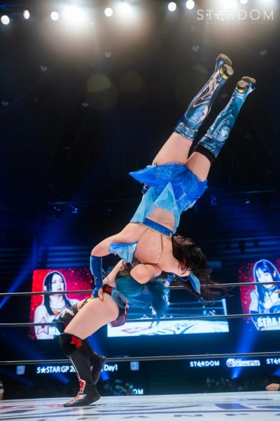 探り合いから髪の毛をつかみ合い世羅が場外に落とす。世羅が追いかけリング下でも髪の毛をつかみ合う。世羅が頭部を蹴飛ばすと、舞華がボディースラムの構え。世羅が切り返し、舞華を本部席に叩きつけるとノドを踏みつけると鉄柱にも叩きつける。15カウントで戻すと、世羅はコーナーに叩きつけ串刺しエルボー。舞華が返すと、「なめんじゃねえぞ!」とブレーンバスター。返した世羅がエルボー、舞華もやり返していくと仁王立ちで受けて立つ。エルボーの打ち合いから世羅が後方に叩きつける。舞華が返すと、世羅は逆エビ固め。エスケープさせずに中央にもっていくと、リフトアップしコーナーに叩きつけダブルニーアタック。世羅はコーナーに上がるが舞華が追いつき雪崩式ブレーンバスターを敢行。世羅が返すと、エルボーの打ち合い。舞華が突進すると世羅がキャッチしサイドに叩きつける。舞華が返してパワースラム。すぐに世羅がファルコンアロー。これも舞華がすぐに返してラリアット。世羅がすぐに返すと舞華がラリアット。世羅が返すと舞華はフィニッシュを宣言し炎華落とし狙い。世羅が切り返し前方に叩きつける。舞華が返すと世羅は羅紗鋏からダイビングダブルニードロップ。3カウントが入り、世羅が舞華を破った。