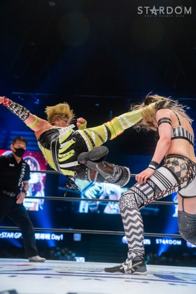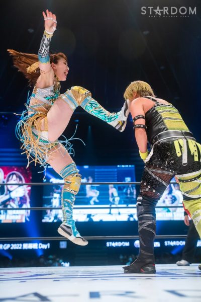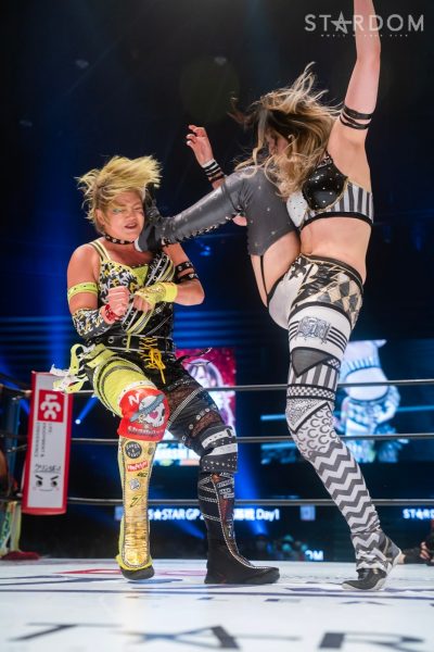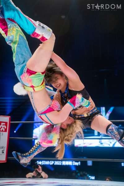ジュリアと葉月の公式戦。両者は会場も同じ大田区でゴッデス・オブ・スターダム王座を争うも、場外でやり合ううちにリング上では桜井まいがコグマに敗れる結果となった。今回はシングルでの決着戦であり、5★STAR GPの大事な開幕戦。白星発進するのは、ジュリアか、それとも葉月か?